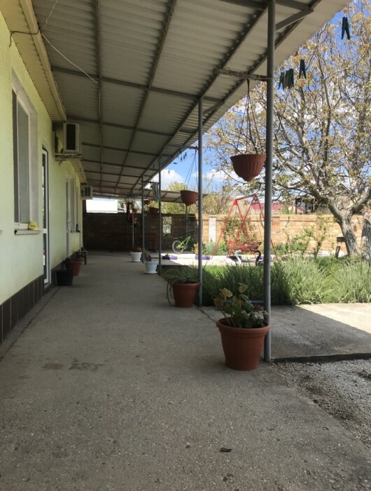 Уютный закрытый дворик с парковкой. Зона отдыха. Кухня общая на 2 номера: 2 раковины, стиральная машина, микроволновка, газовая плита, большой холодильник и вся необходимая посуда. Интернет, Wi-Fi на всей территории двора.