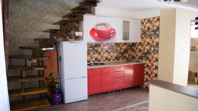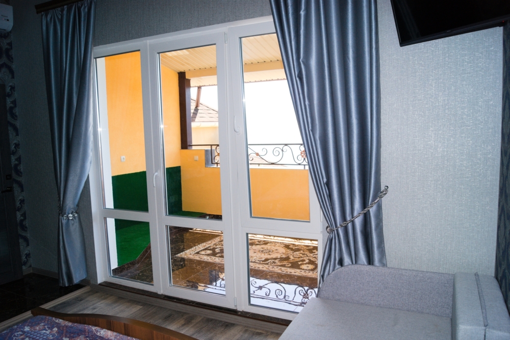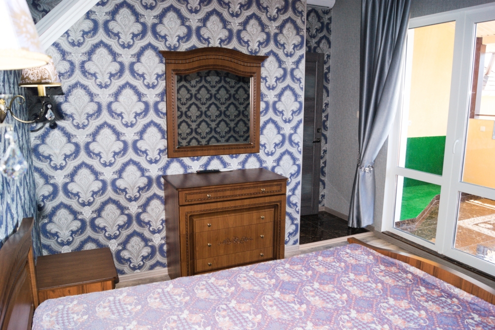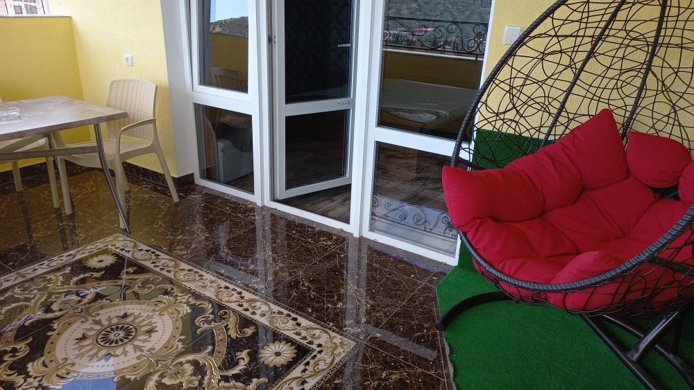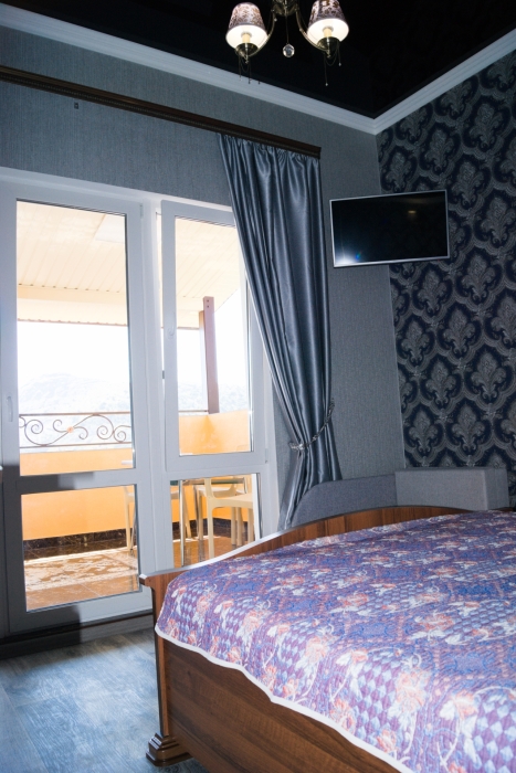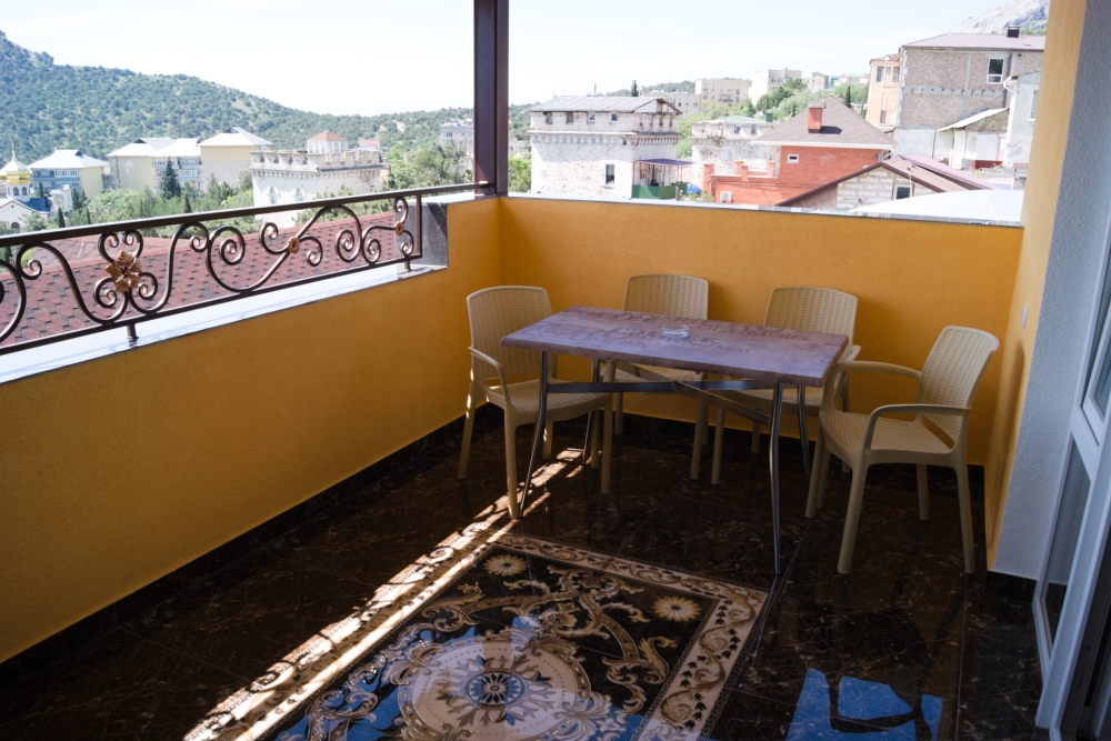 Таунхаус — это двухуровневый, двухкомнатный номер люкс с панорамным видом на море!!! Включающий в себя большой балкон при входе на нижнем уровне и огромную лоджию с панорамным видом на море!!! на верхнем ярусе. таунхаус рассчитан вместимостью от одного человека до четырех и можно одно дополнительное место ( 4+1)! Месторасположение Таунхауса на пересечении ул. Голицына 16 и ул. Шаляпина 16 ( вход и балкон, находятся на ул. Шаляпина 16, а верхний этаж и лоджия с панорамным видом на море!!! выходит на ул. Голицына 16. ), спальных мест для пяти человек достаточно ( на нижнем ярусе балкон, комната студия в которой есть красивая кухня, встроенная газ.плита, встроенная вытяжка, душ и туалет, обеденная зона. стол со стульями, шкаф купе, ЖК телевизор 80 см диагональ, двухкамерный холодильник и двуспальная кровать, на верхнем ярусе красивая комната с панорамным видом на море!!! в которой стоит двуспальная кровать и раздвижная не большая тахта, есть комод, две прикроватные тумбы, большое зеркало и ЖК телевизор 80 см диагональ и большая лоджия с панорамным видом на море!!! на которой стоит обедненная зона, стол с креслами. В каждой комнате, есть своя сплит- система! Работает WI-FI. Это расположено на третьем этаже, отдельный вход ( вариант таунхауса). Таунхаус по площади 60 м², лоджия или терраса, которая на верхнем ярусе с панорамным видом на море 15 м². Пол на террасе- керамогранит, на нем стоит большой обеденный стол, пластиковые кресла и еще стоит «Кресло Кокон»! Дополнительное место платное!!!