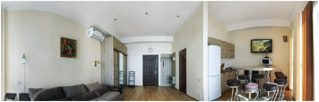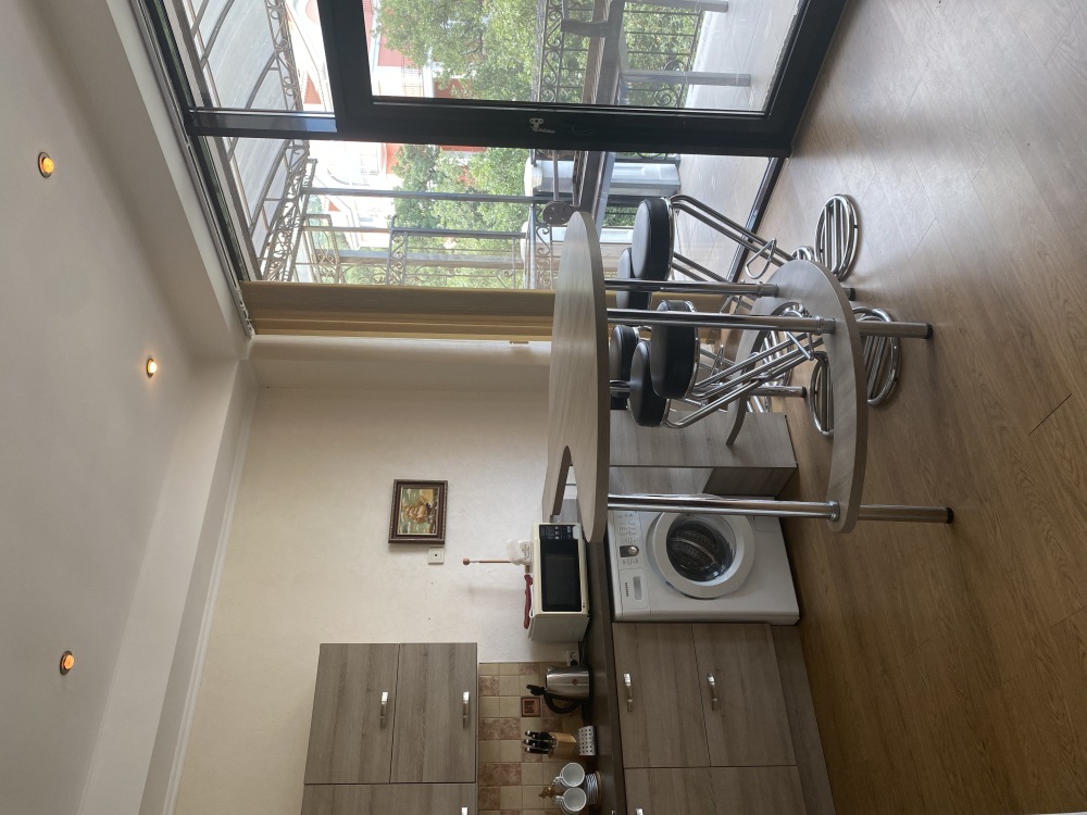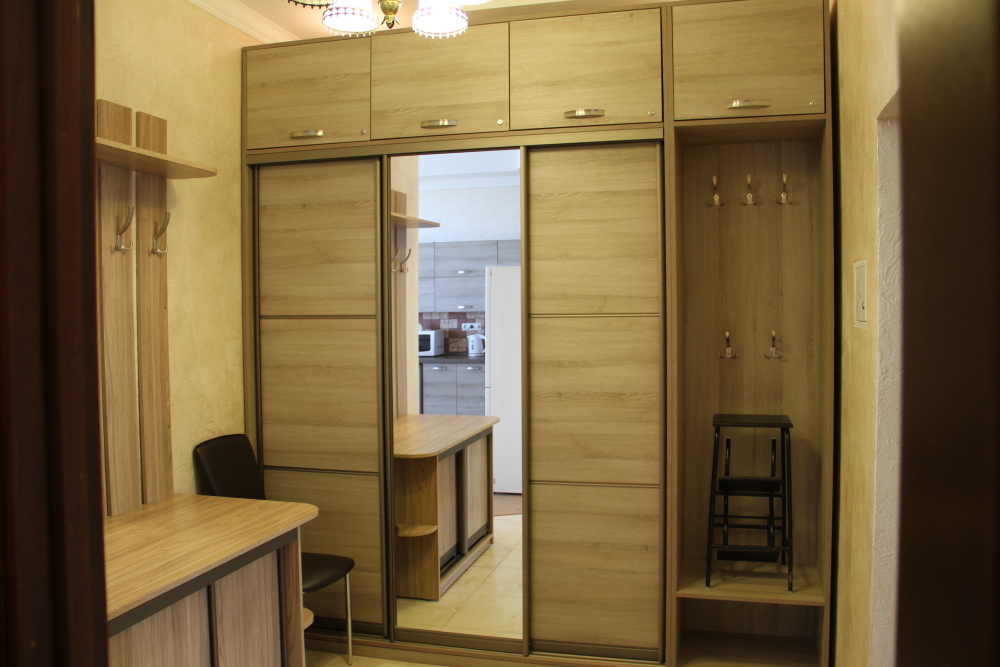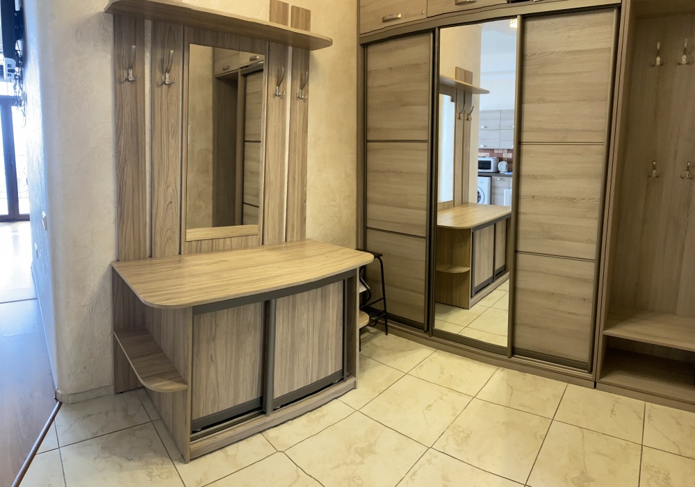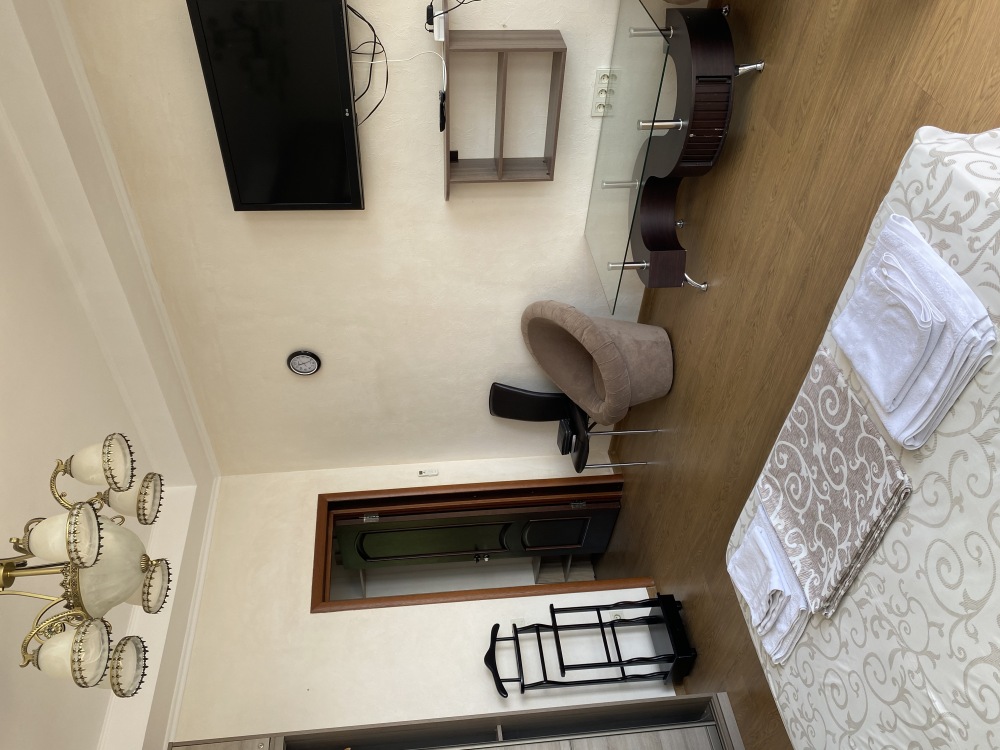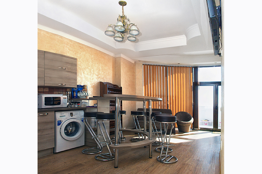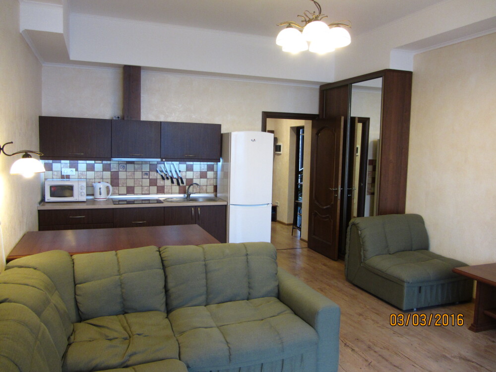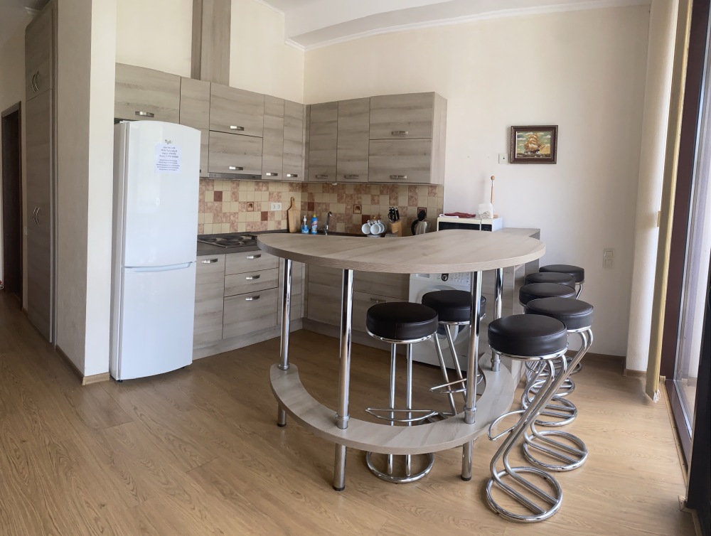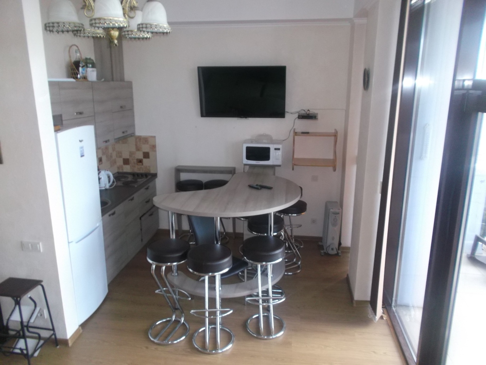 Апартамент-студия для размещения семьи из трех человек. Полноценная кухонная зона со всем необходимым оборудованием.