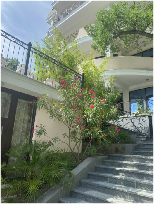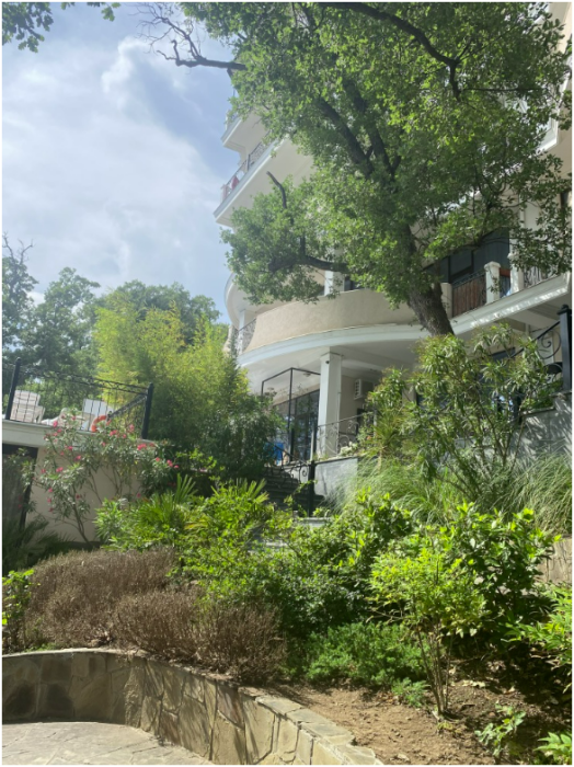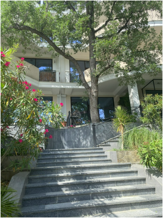 Рядом расположен прекрасный парк элитной здравницы «Морской прибой», покрытый уникальной экзотической растительностью, который ведет Вас на изолированный от внешнего мира, тихий, немноголюдный мелко-галечный пляж. Парк пересекает русло горной речки Хаста-Баш, несущей к морю свои бурные воды.