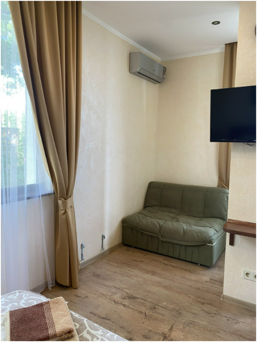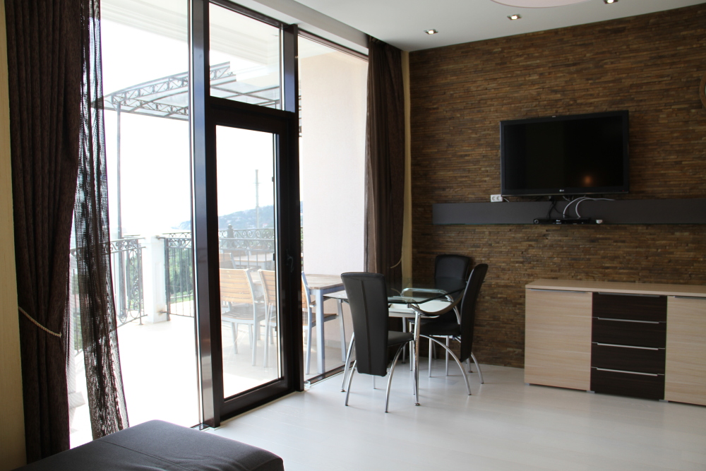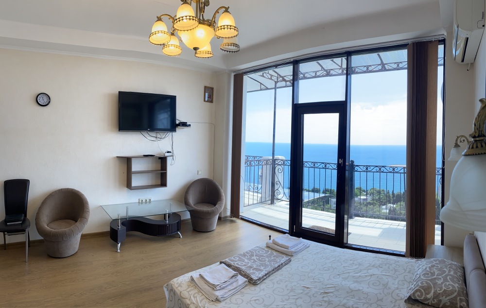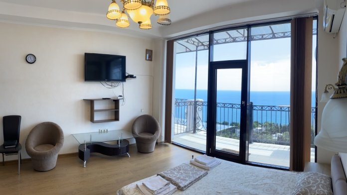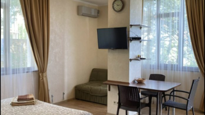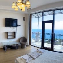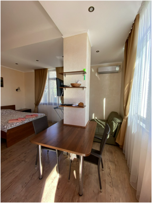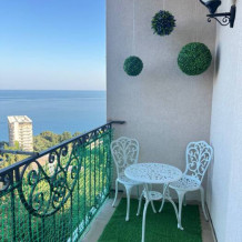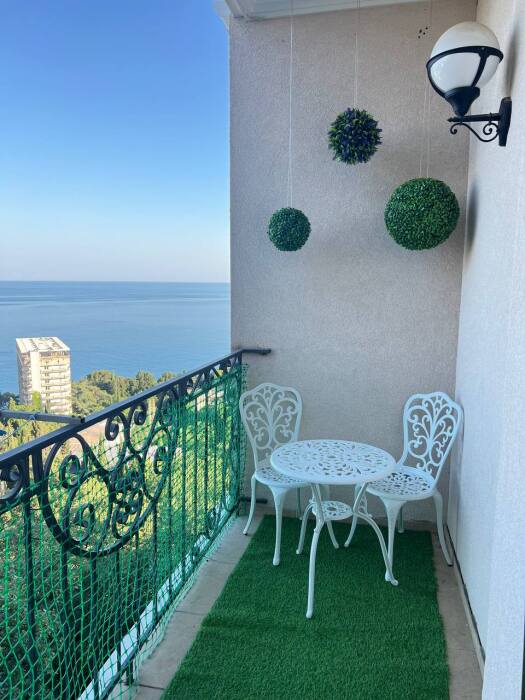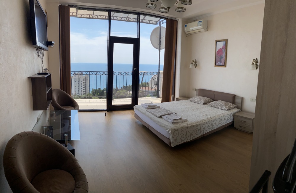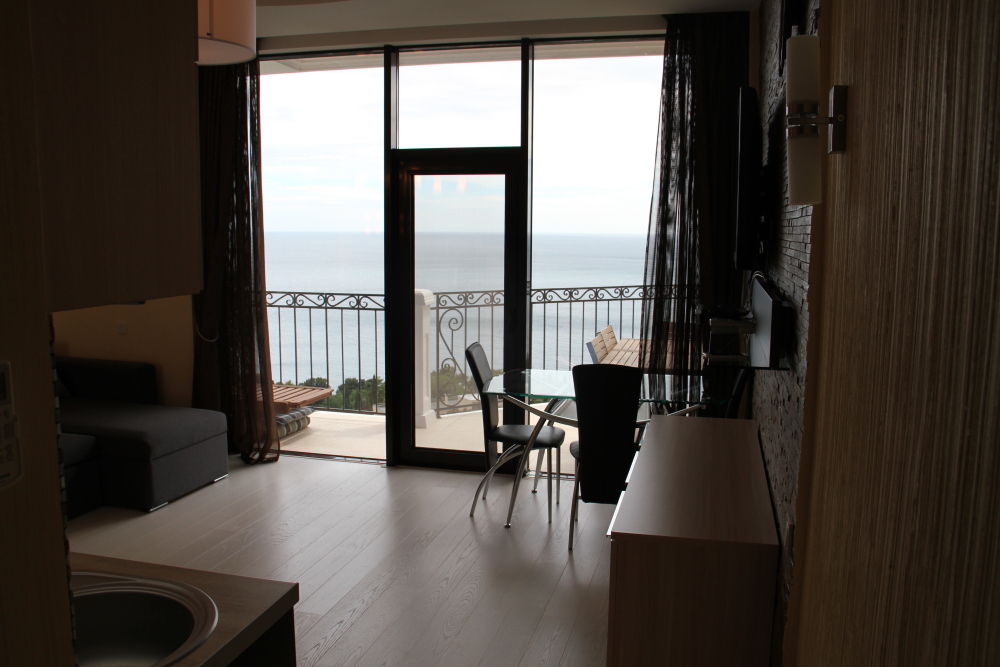 Просторная студия с террасой и прямым видом на море. Подойдет для размещения семьи из четырех человек.В стоимость включено посещение открытого бассейна на территории ЖК в летний период. Бронирование от 2-х ночей.