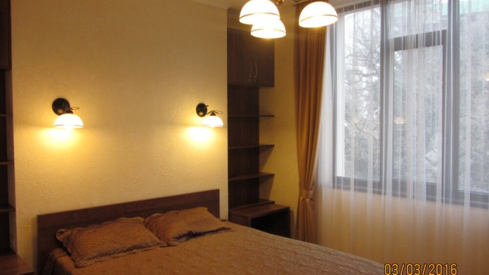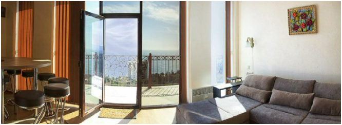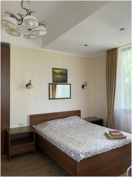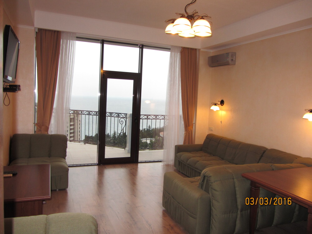 Двухкомнатный апартамент с видом на море на 5-м этаже. Подойдет для размещения семьи из пяти человек. Бронирование от 2-х ночей