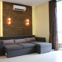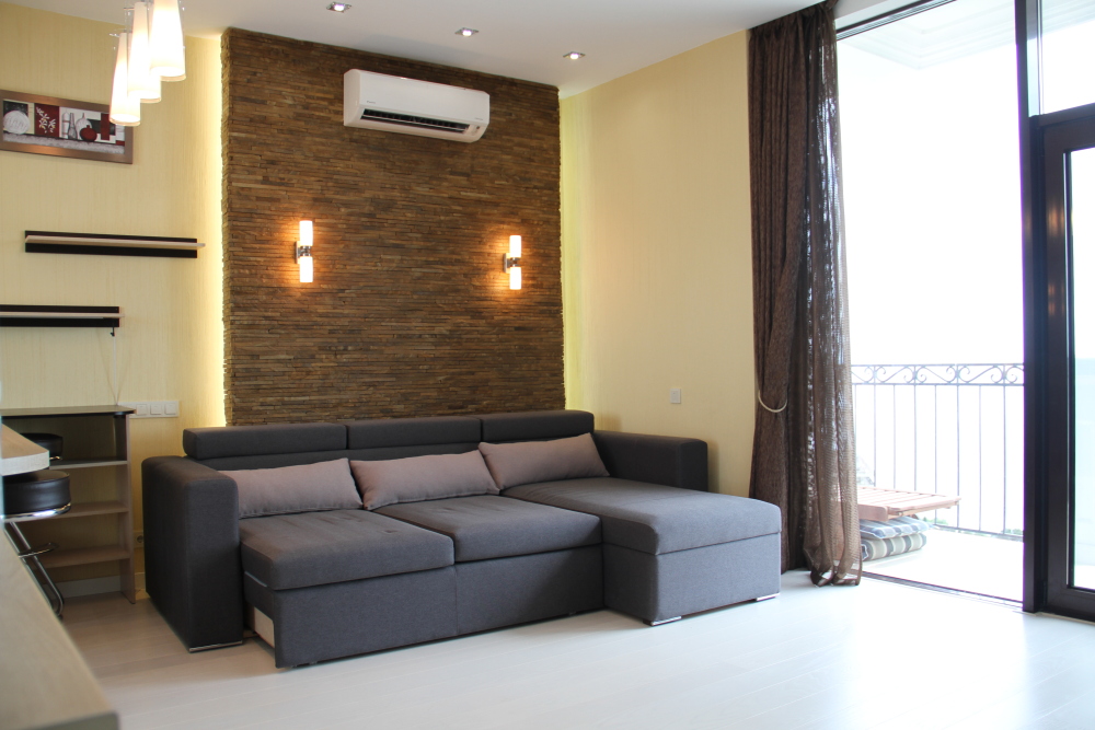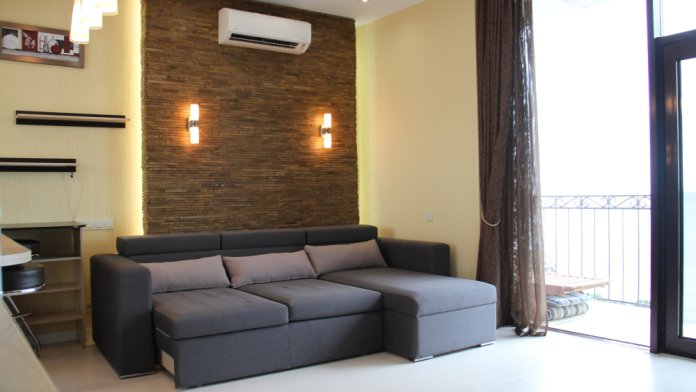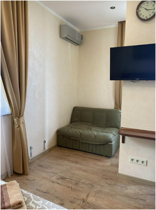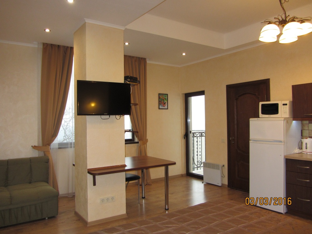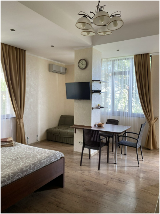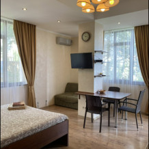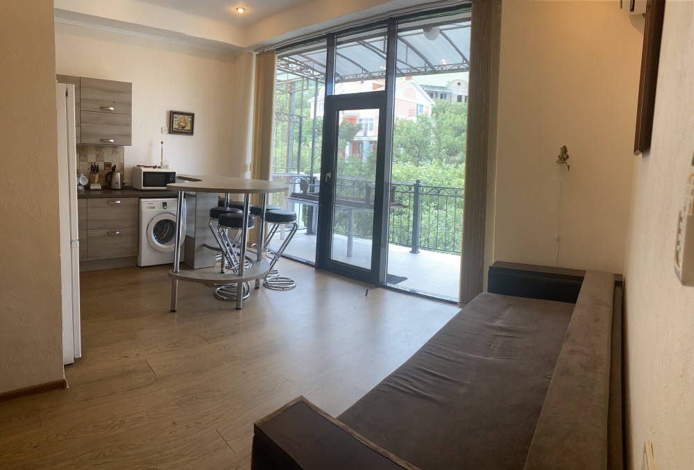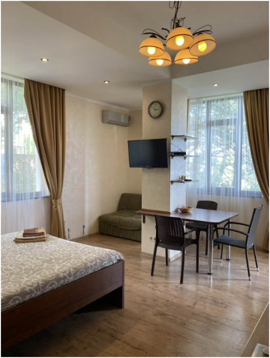Уютная студия с балконом, полностью оборудована для комфортного отдыха пары или семьи из трех человек.