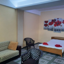 Все номера укомплектованы телевизором со спутниковыми каналами, кондиционером и холодильником. В некоторых номерах обустроена гостиная зона. Из ряда номеров открывается вид на горы или город. Производится ежедневная уборка номеров.
