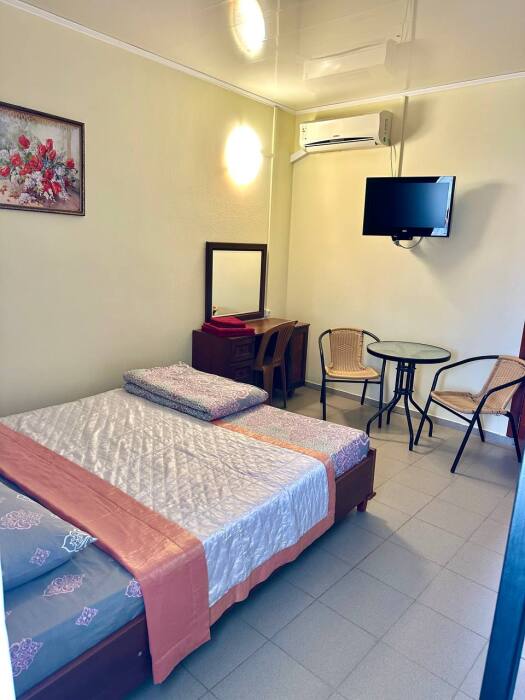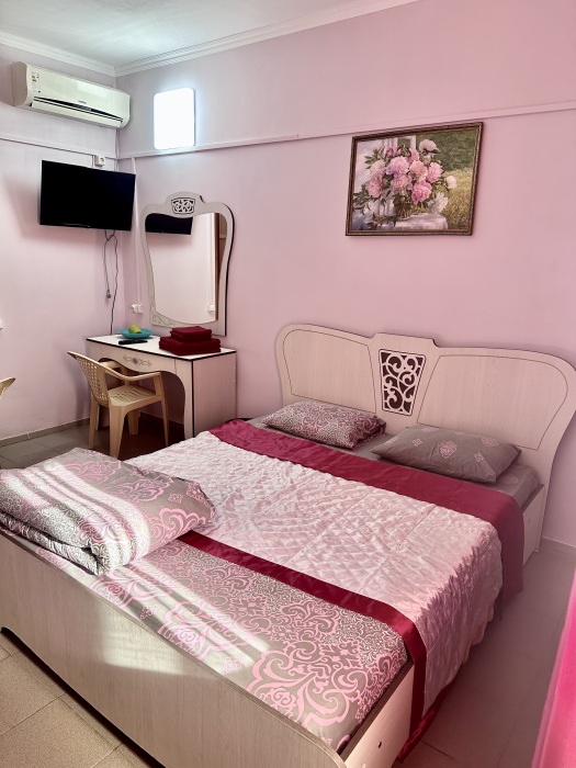 Уютный номер, рассчитан на размещение 3 гостей. В номере есть все необходимое для комфортного проживания: удобная двуспальная кровать и евро-раскладушка, прикроватные тумбочки, шкаф для одежды, туалетный столик, С/У с душем.