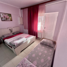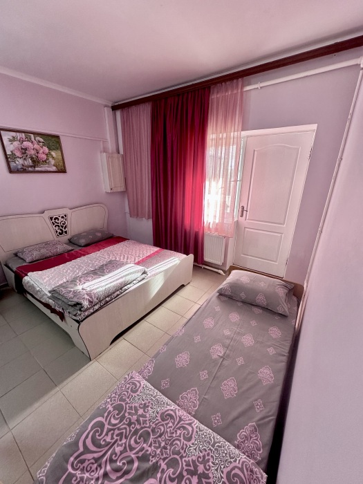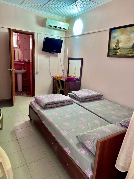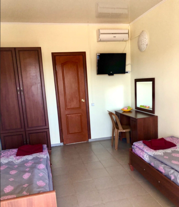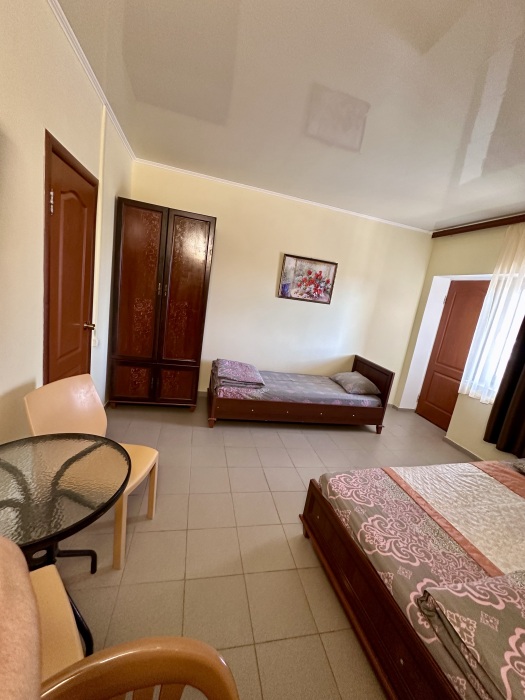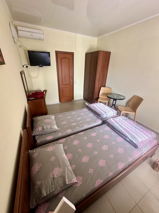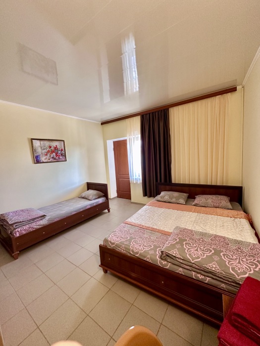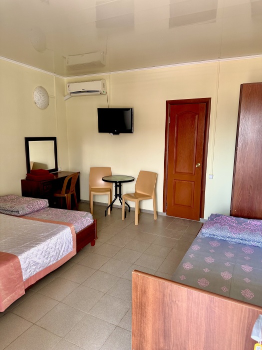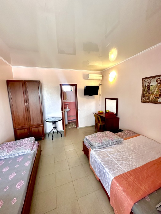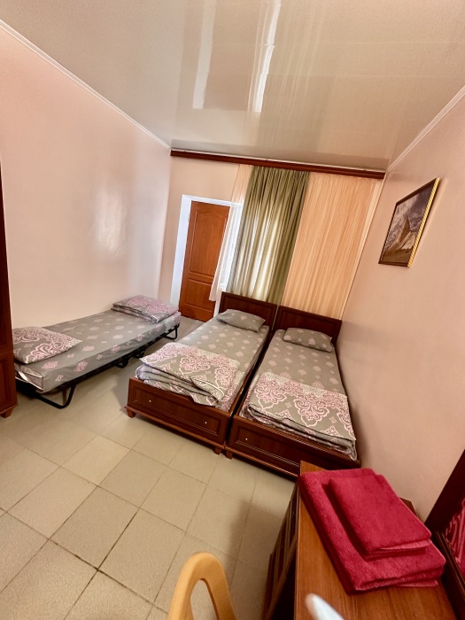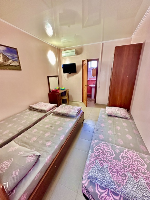 Уютный номер, рассчитан на размещение 3 гостей. В номере есть все необходимое для комфортного проживания: удобная двуспальная кровать и односпальная, прикроватные тумбочки, шкаф для одежды, туалетный столик, С/У с душем.