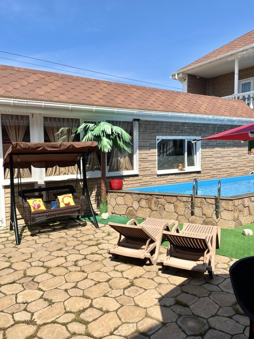 На закрытой территории бассейн для детей и взрослых, мангальная зона с шатром, Wi-Fi на всей территории и в номерах, удобная кухня-столовая со всем необходимым для самостоятельного приготовления пищи.