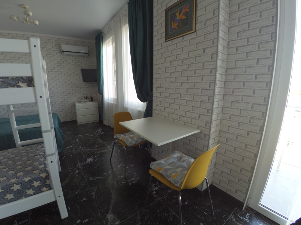 Квартира расположена на 5-м этаже (есть лифт) 7-ми этажного нового дома, в 80 метрах от пляжа Черного моря.