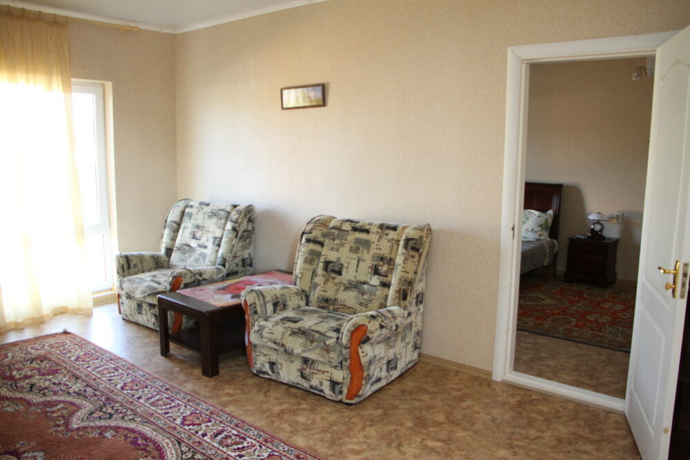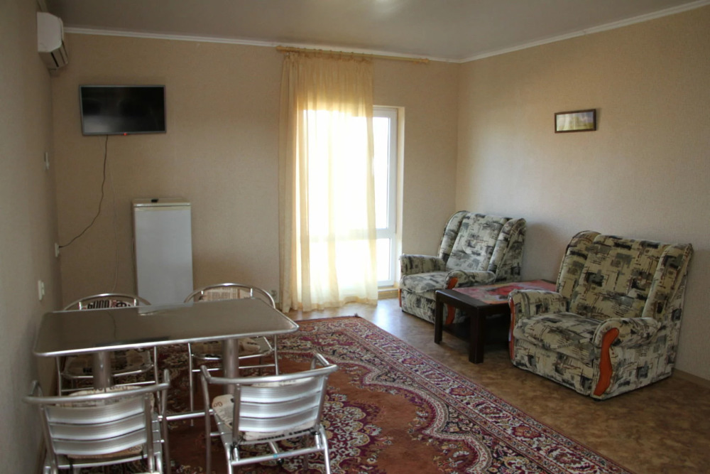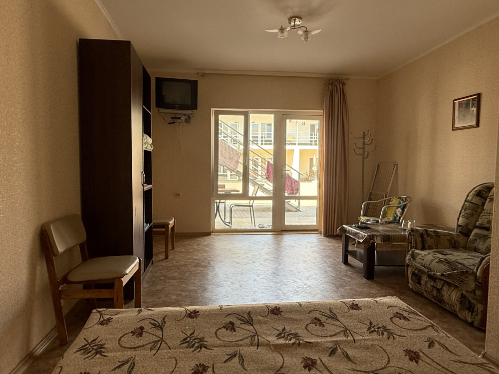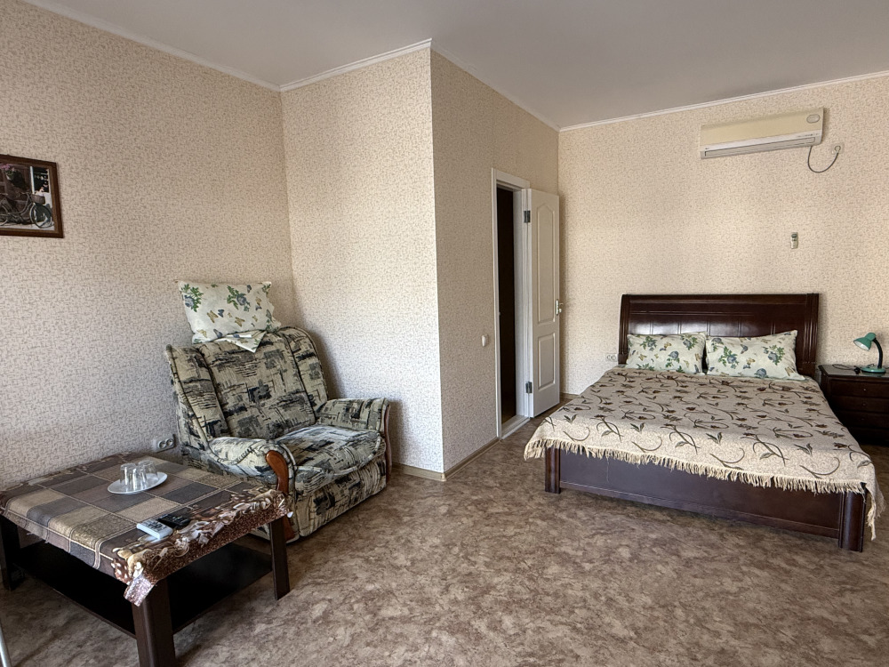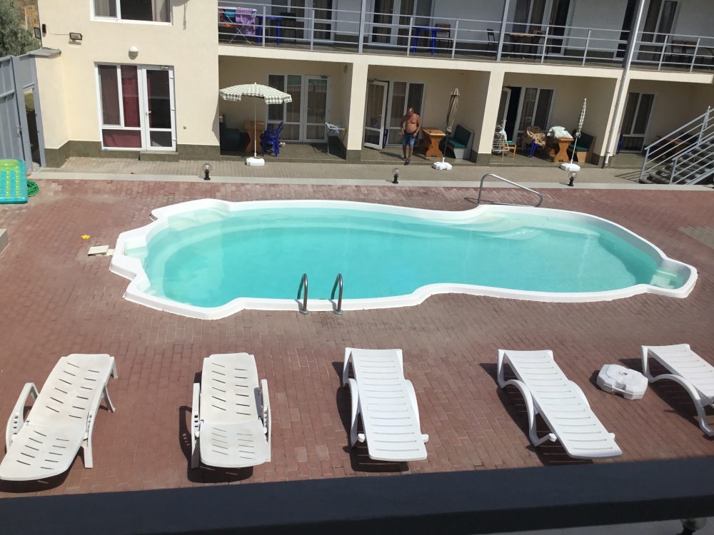 У нас домашняя кухня, бесплатная автостоянка, бассейн 10м на 5м под открытым небом, 100 метров до пляжа с белым песком, а каждый номер оборудован кондиционером, WI-FI.