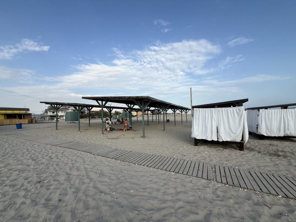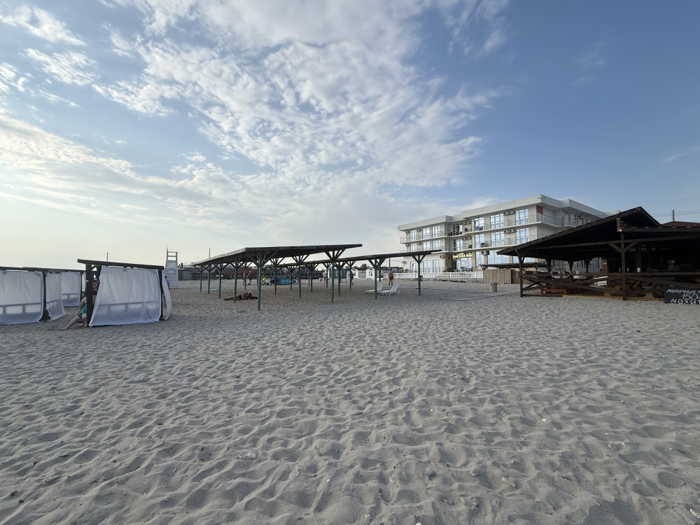 Особого внимания заслуживает пляж, который расположен в 100 метрах от нашего Гостевого дома. Широченный берег пляжа, покрытый мелким бархатным песком, полоса пляжа кажется бесконечной, уходящей далеко за горизонт. Благодаря этому пляж никогда не бывает переполненным, спуск в море пологий, составляет 30-40 м, что делает привлекательным отдых с детьми и обеспечивает безопасность детского купания.