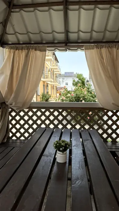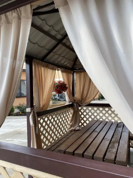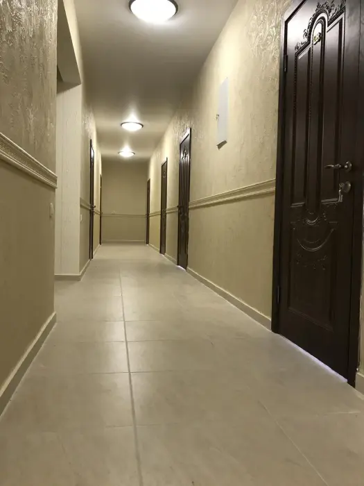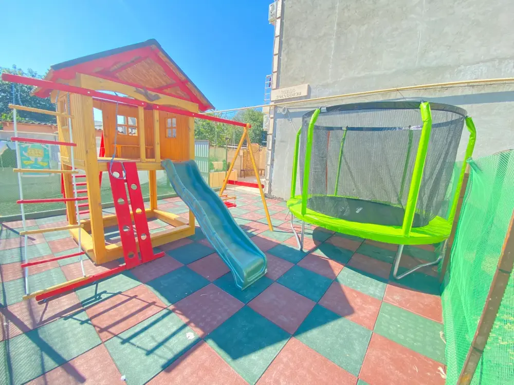 Большая территория с детской площадкой, мангальной зоной и парковкой. Имеется общая кухня. На этаже есть гладильная доска и утюг. Бесплатный wi-fi на всей территории отеля