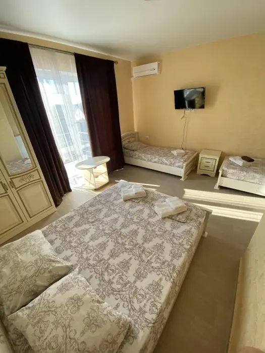 Для размещения гостям предлагают 2, 3, 4-местные номера. Номера оборудованы: сплит-система (кондиционер), телевизор с плоским экраном, спутниковое телевидение, холодильник, функциональная мебель, шкаф, плечики для одежды, санузел (душ, туалет, раковина), гигиенические принадлежности, лицевые и банные полотенца, фен.
