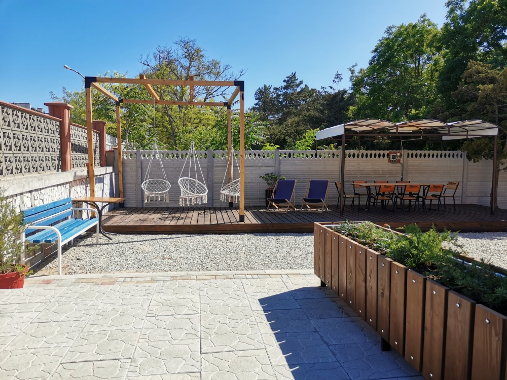 Своя территория, оборудована мангальной зоной, беседкой, садовой мебелью и шезлонгами.