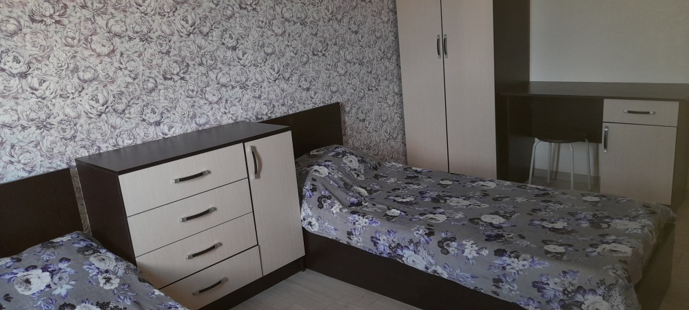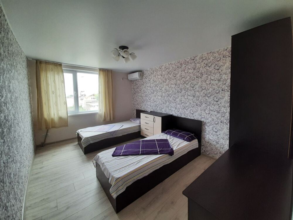 1 двуспальная кровать, 2 односпальных кровати, 1 диван-кровать, детская кроватка (по запросу)