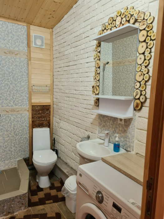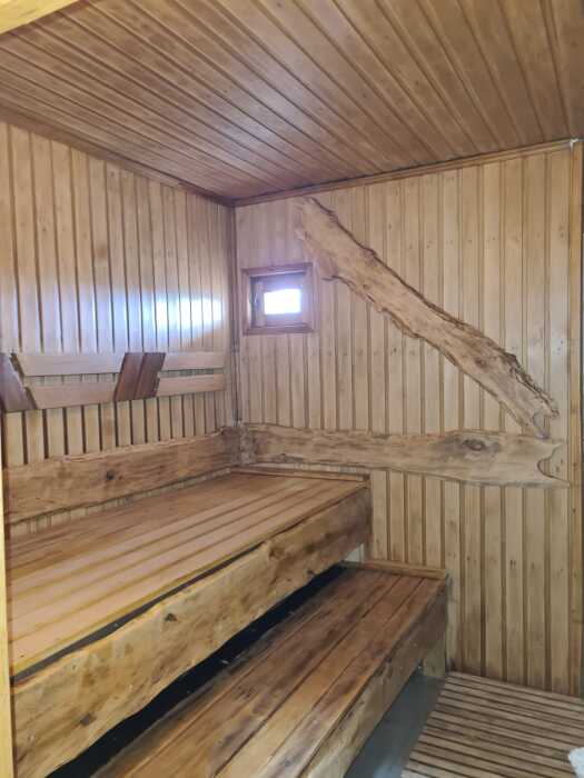 • На территории есть банный комплекс (платно) от 1200 руб. / час. Минимальный заказ 2 часа. 4 часа оплачиваете - 5-ый в подарок. Вместимость до 6 человек. Каждый последующий (7,8 чел.) - 200 руб./ час с человека. Стоимость комплекта белья - 300 руб./ чел. (одноразовые тапочки, одноразовая шапочка, простынь и полотенце). Также есть на террасе мангал, деревянная купель с холодной водой, сенная качеля. Горячая купель "Фурако" - 3000 руб./сеанс, рассчитана на использование 3 - 4 часа. В бане предоставляется: вода, 2 вида травяного чая, домашняя мята, Wi-Fi, TV, микроволновая печь, холодильник, электрический чайник.