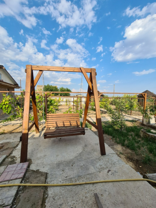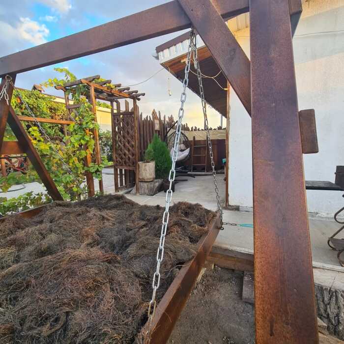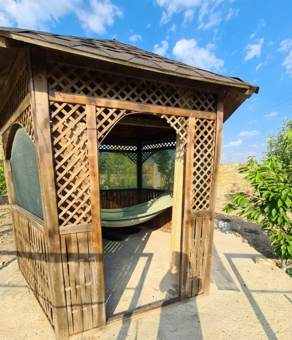 Также есть на террасе мангал, деревянная купель с холодной водой, сенная качеля.