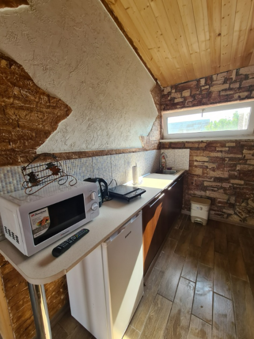 В бане предоставляется: вода, 2 вида травяного чая, домашняя мята, Wi-Fi, TV, микроволновая печь, холодильник, электрический чайник.