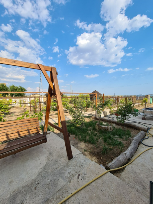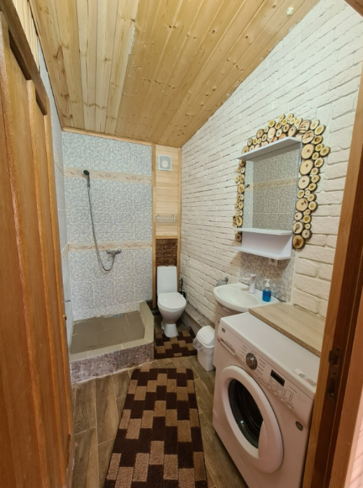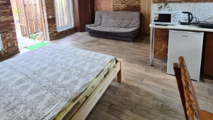 В 1-комнатном доме 36 кв.м.: кровать 2-спальная 2,00*1,60м, диван раскладной, туалет, кухня- оборудована полностью, своя мангальная зона. Закрытый большой двор с выходом к озеру. Есть парковка. Для детей - батут, качели, купели, которыми можно воспользоваться в виде бассейна. Рассчитан дом до 4 человек.