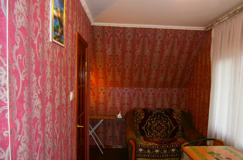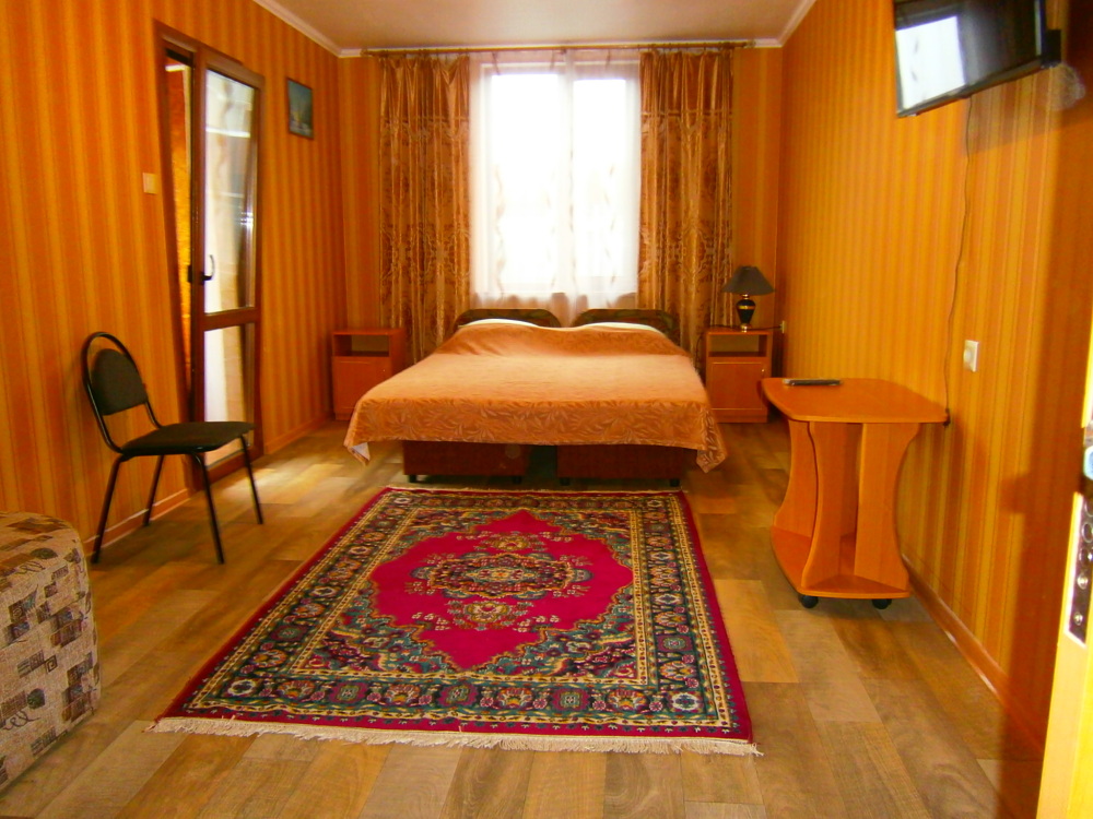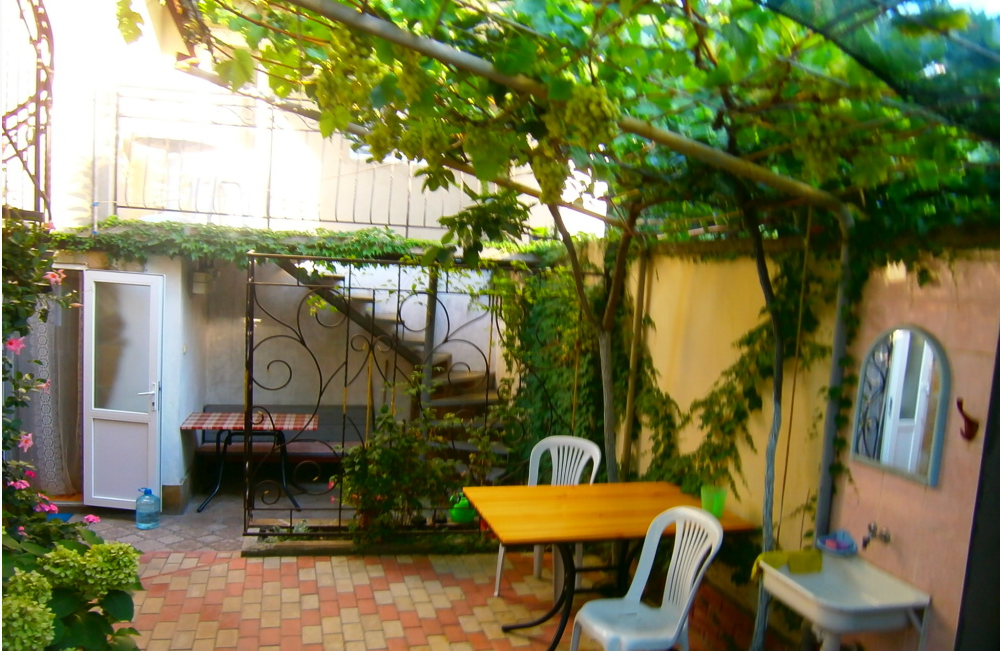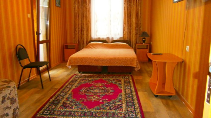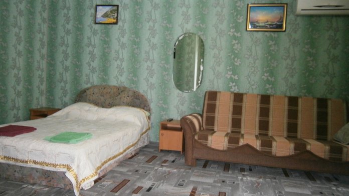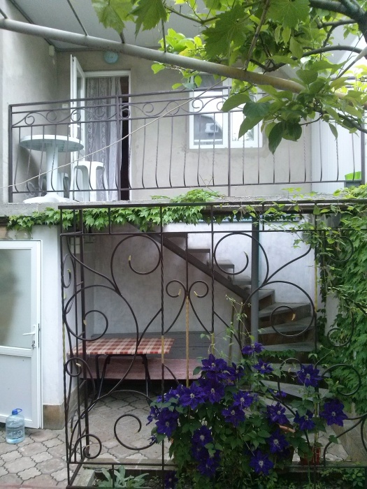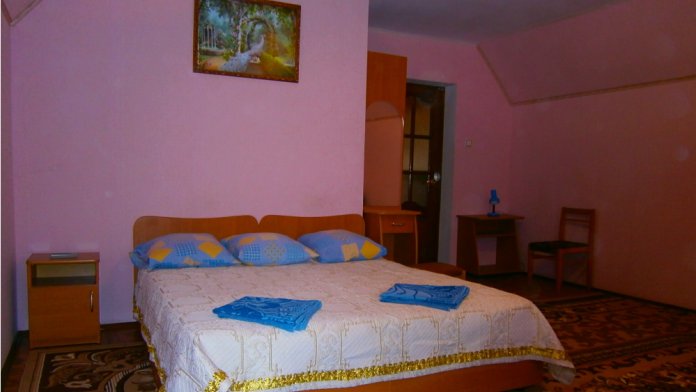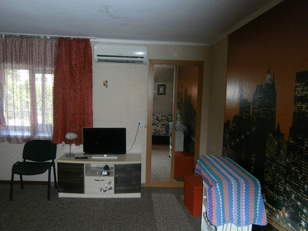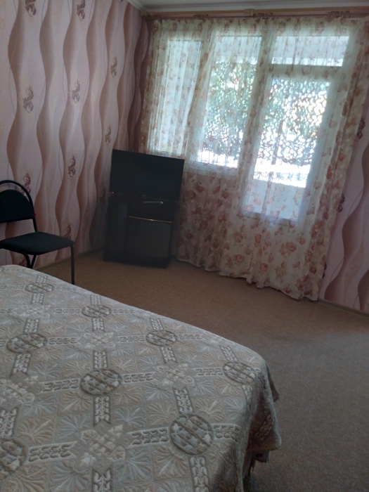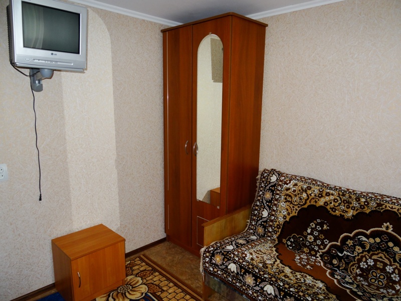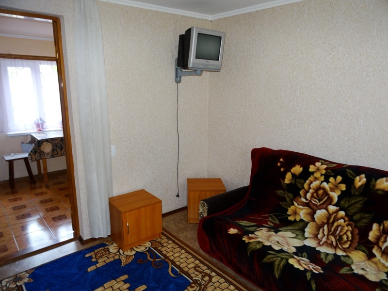 Номер №4 со всеми удобствами+ своя кухня. Отдельный вход. Вокруг всё в зелени. В номере: спальные места: двухспальная кровать и диван кровать (возможно 4 чел)Мебель: шкаф, стулья, журнальный столик, телевизор, кондиционер, гладильная доска и утюг. Кухня оборудована всем необходимым инвентарем: холдильник, посуда, нагревательный прибор (колонка) обеденая зона.