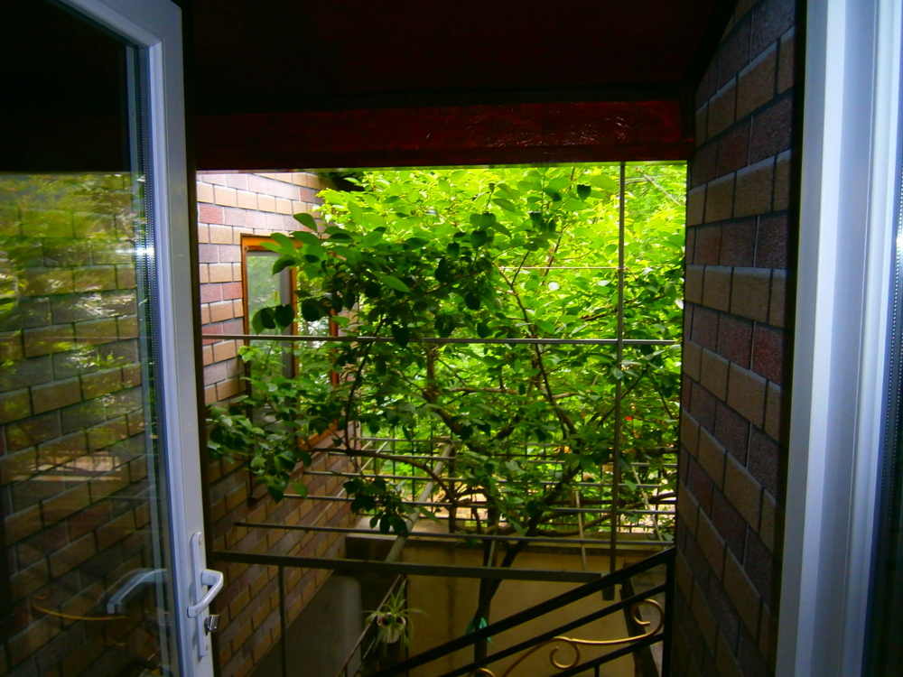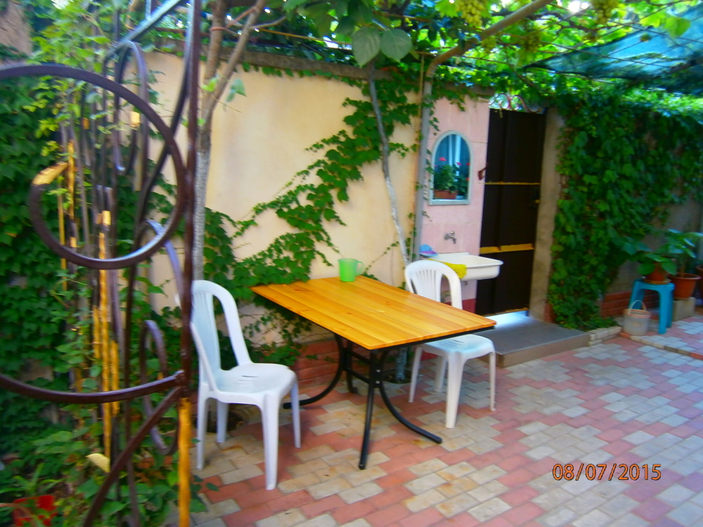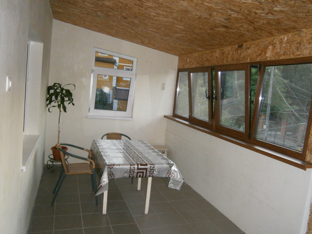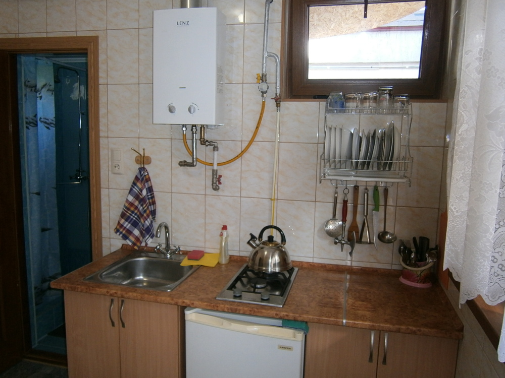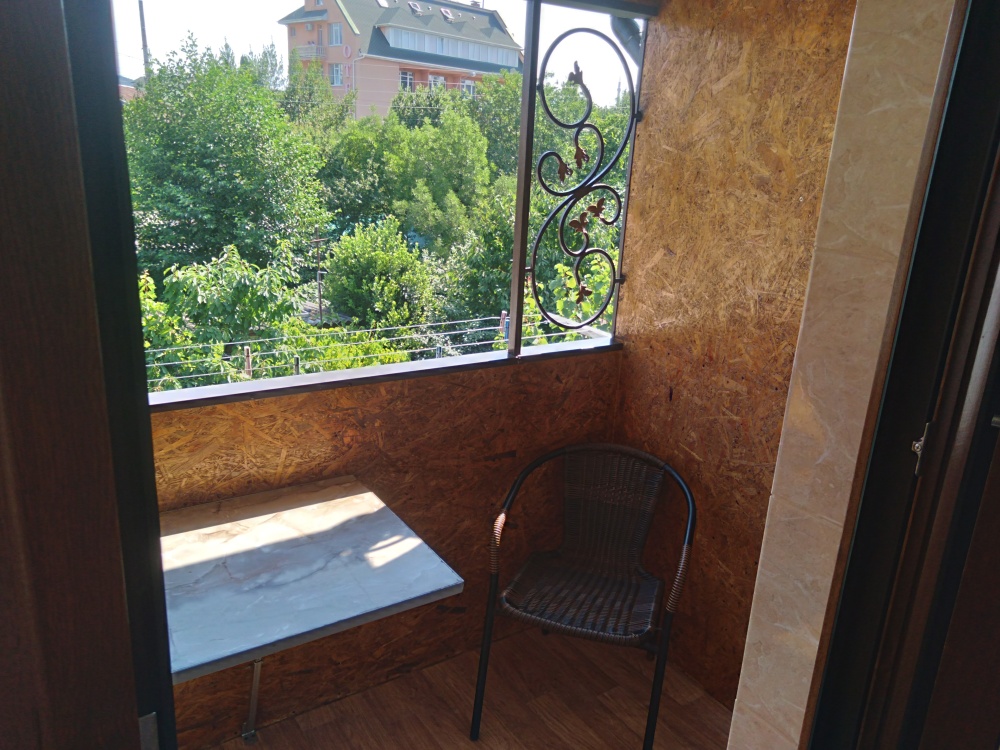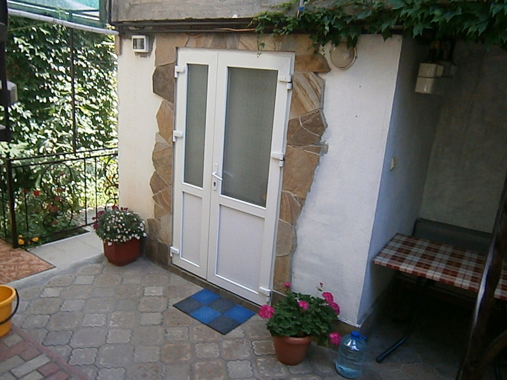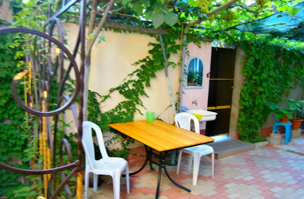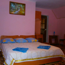 Номер №4 со всеми удобствами+ своя кухня. Отдельный вход. Вокруг всё в зелени. В номере: спальные места: двухспальная кровать и диван кровать (возможно 4 чел)Мебель: шкаф, стулья, журнальный столик, телевизор, кондиционер, гладильная доска и утюг. Кухня оборудована всем необходимым инвентарем: холдильник, посуда, нагревательный прибор (колонка) обеденая зона.