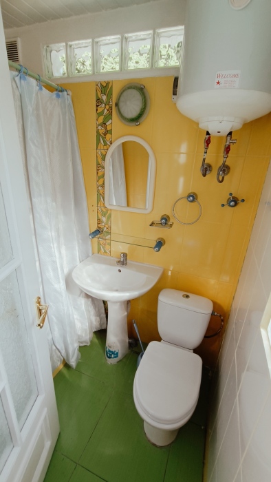 - два санузла: 1 душевая кабинка, 1 душевой поддон, 2 бойлера, 2 унитаза, 2 умывальника.