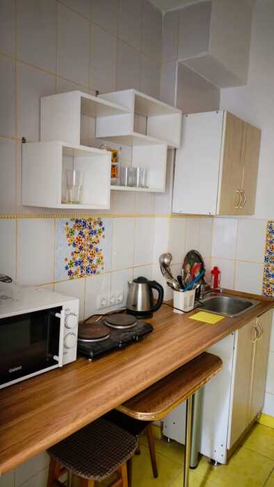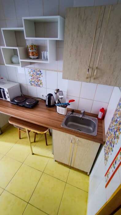 В квартире спальня, кухонный уголок, два санзула, веранда. Есть 2-этажная деревянная кровать, две 1,5-кровати и 2-спальный диван. Телевизор, микроволновка, стиральная машина, Wi-Fi. Бесплатная парковка.