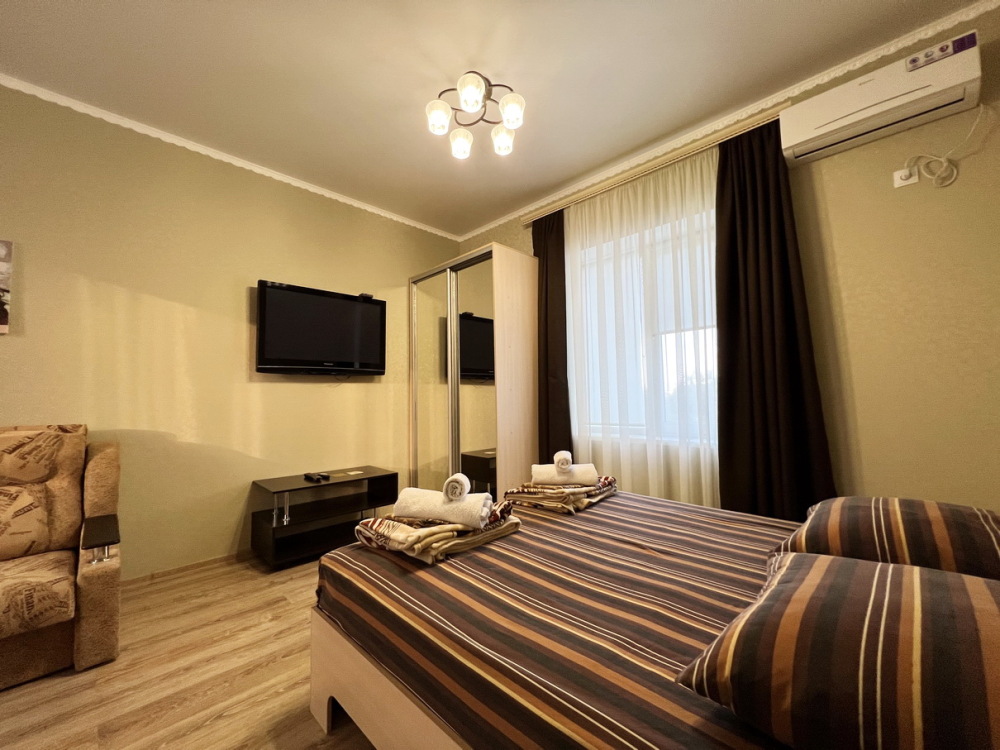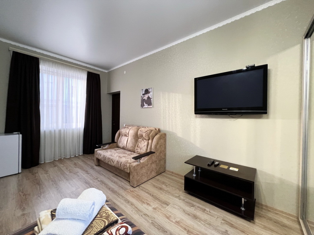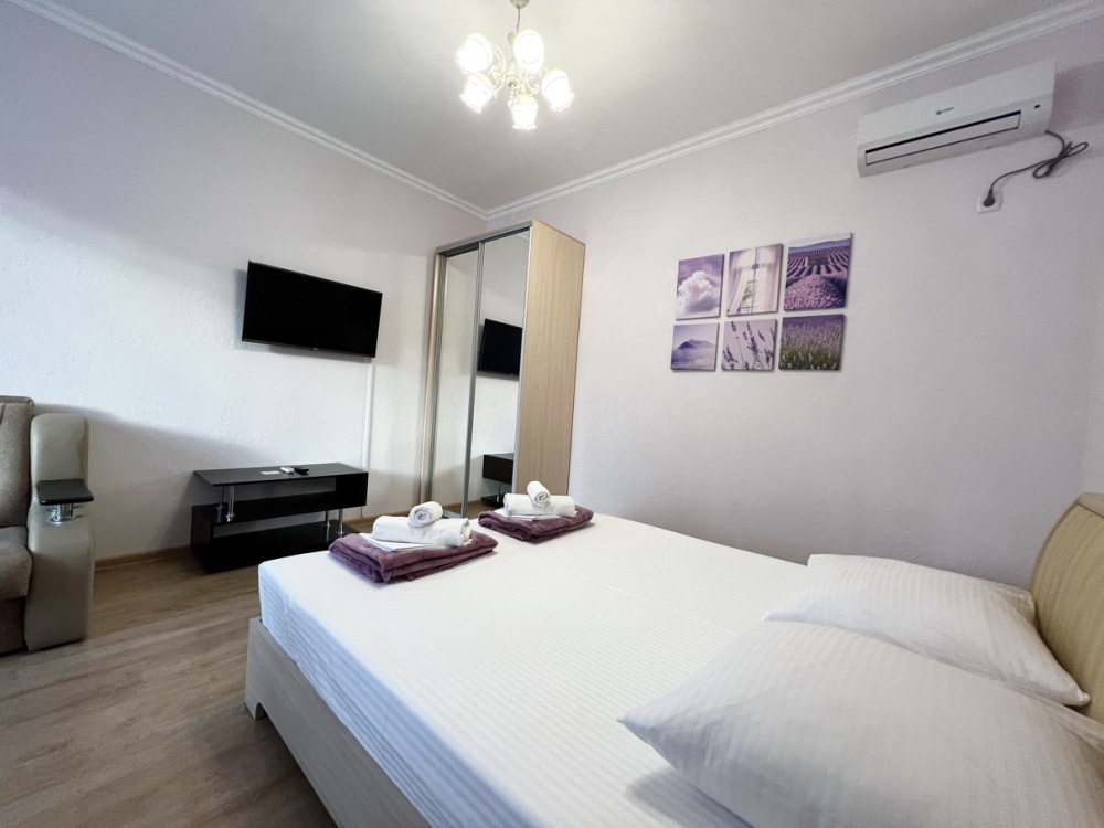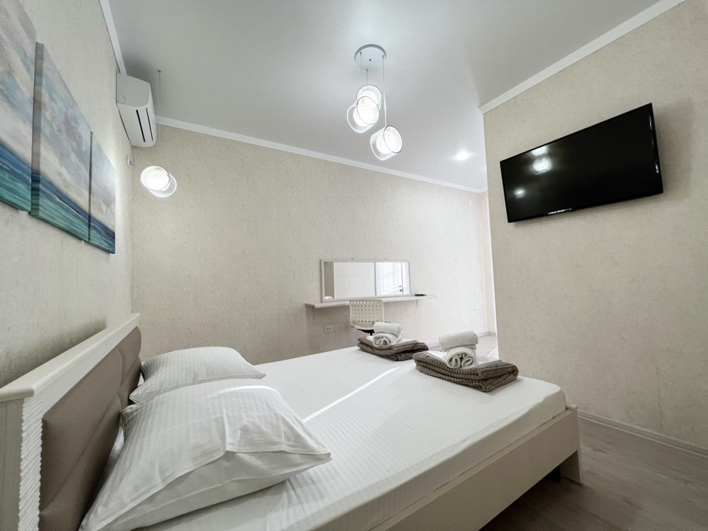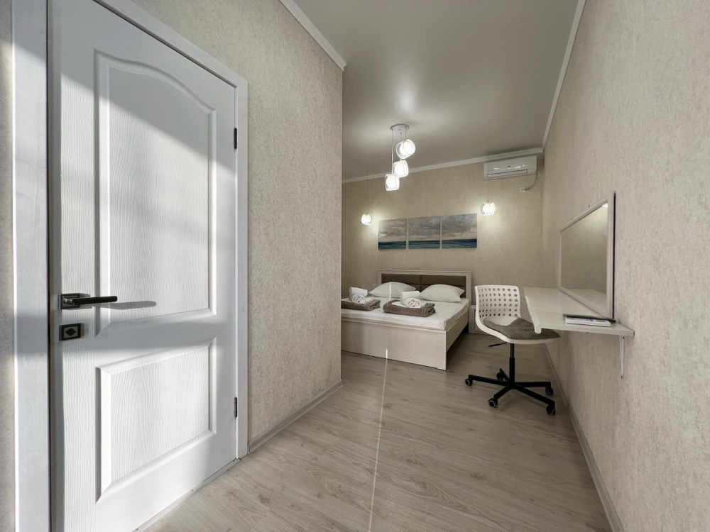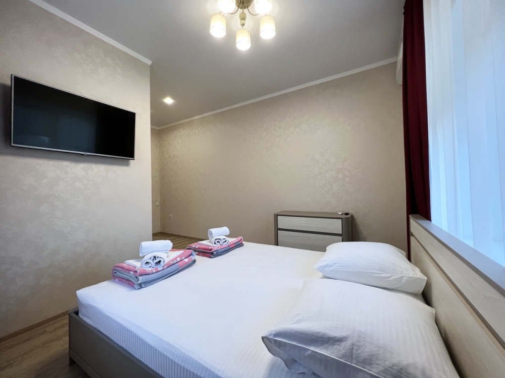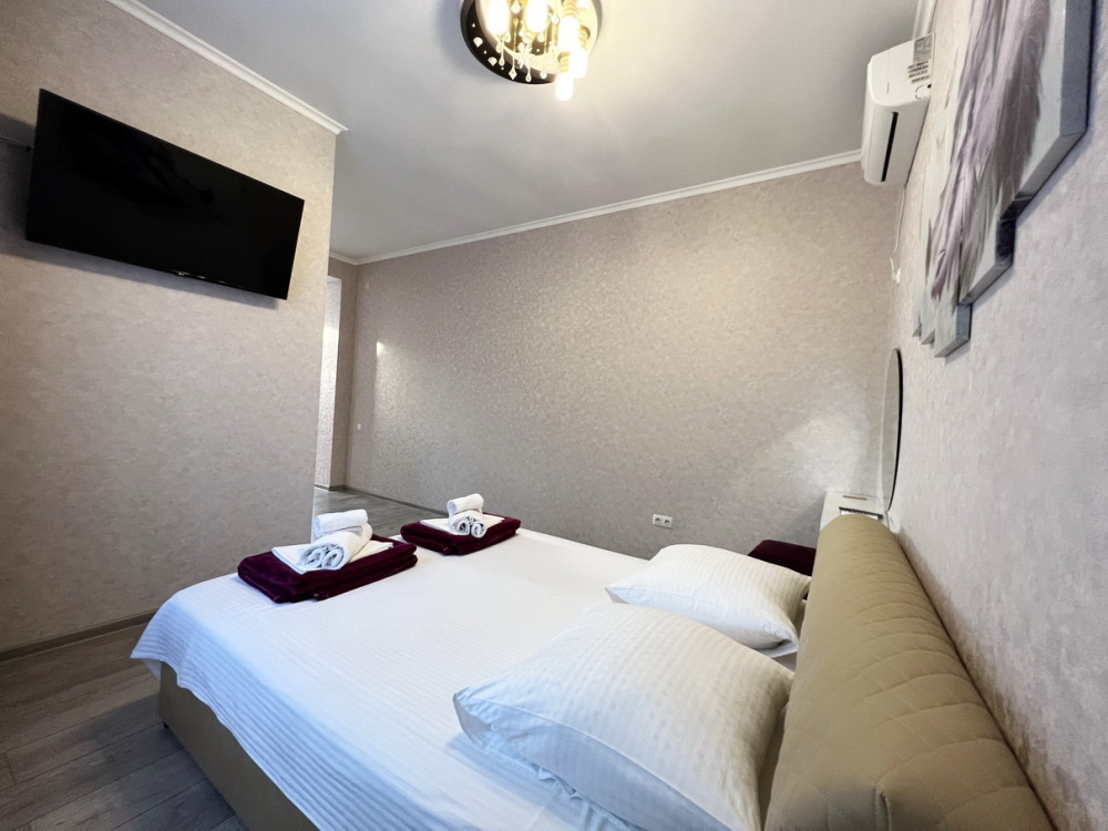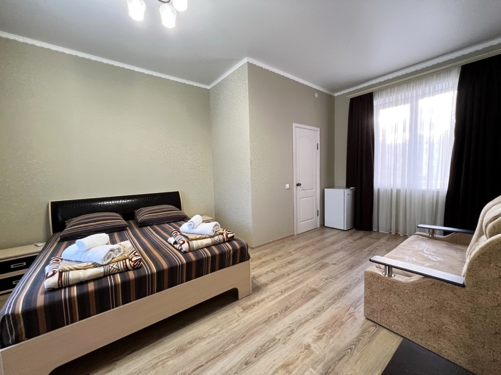 Шикарная двухспальная кровать с ортопедическим матрасом и идеально чистым постельным бельём гарантированно обеспечит полноценный сон и возможность набраться сил.Комфортный отдых в номере обеспечивается наличием кондиционера,телевизора,бесплатного интернета и много того,что создаёт условия для благоприятного пребывания в номере.