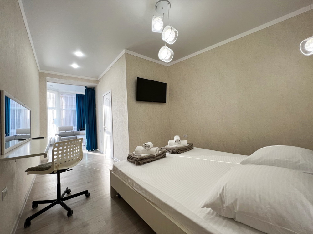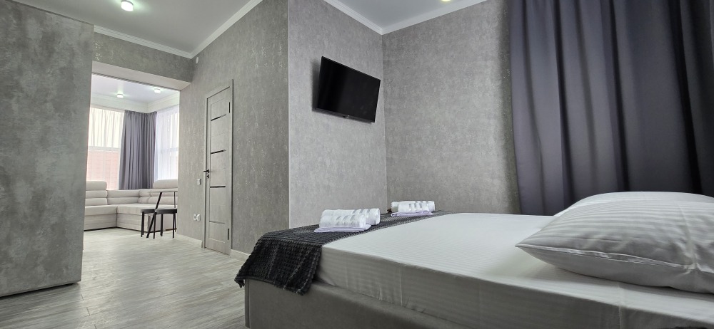Роскошный двухкомнатный номер с балконом.Идеально подходит для длительного проживания.Изысканный,элегантный,современный дизайн номера в стиле«лофт» создаёт обстановку роскоши,неги,уюта.
