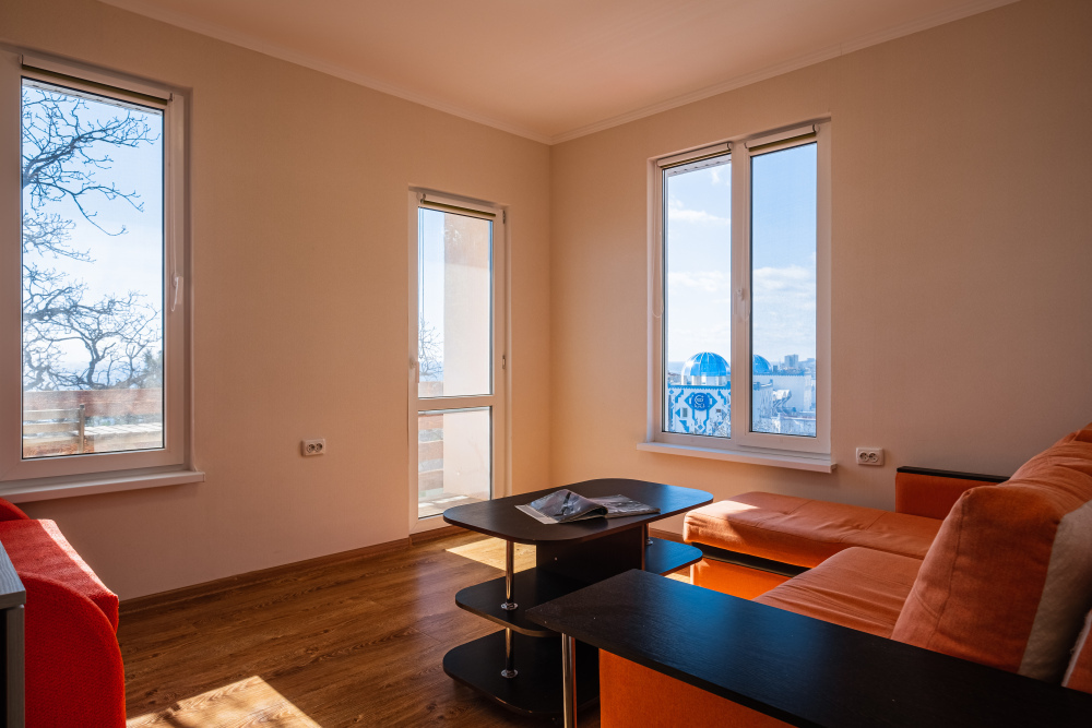 - видовой двухкомнатный номер на 4 этаже для 4-5 человек.
