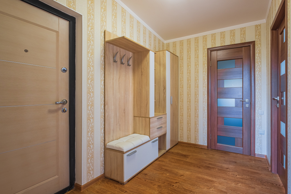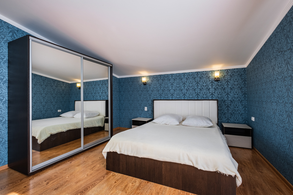 Первая комната с двуспальной кроватью с анатомическим беспружинным матрасом.