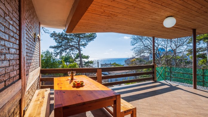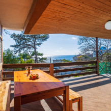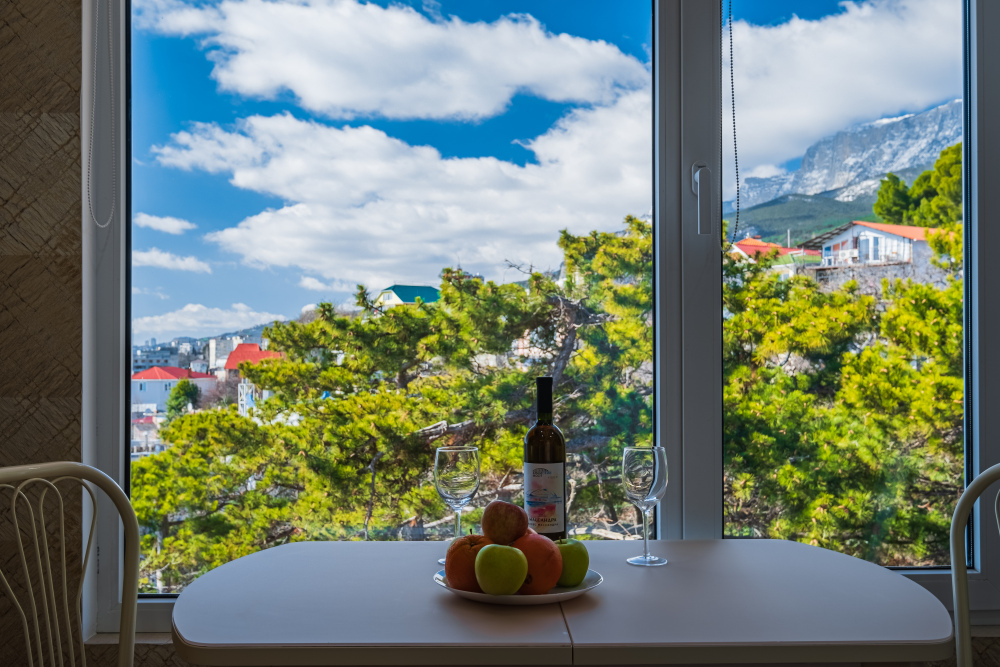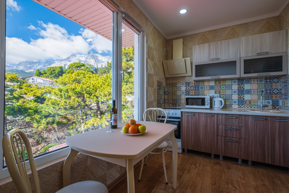 И каждое утро, за чашечкой кофе, вас будет радовать красивейший вид на море и горы. А ещё может и компания весёлых бельчат, порадует Вас прыгая по деревьях напротив окон .