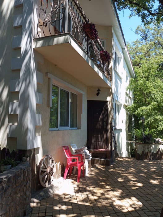 Номер имеет свой вход, просторная спальня с хорошей мебелью (плательный шкаф, двуспальная кровать), кухня оборудованная всем необходимым(варочная панель, электрочайник, холодильник), санузел с душевой кабиной (вода горячая и холодная постоянно, водонагреватель), из окон вид на море, белье, посуда, полотенца, Wi-Fi, спутниковое телевидение, маленький дворик.