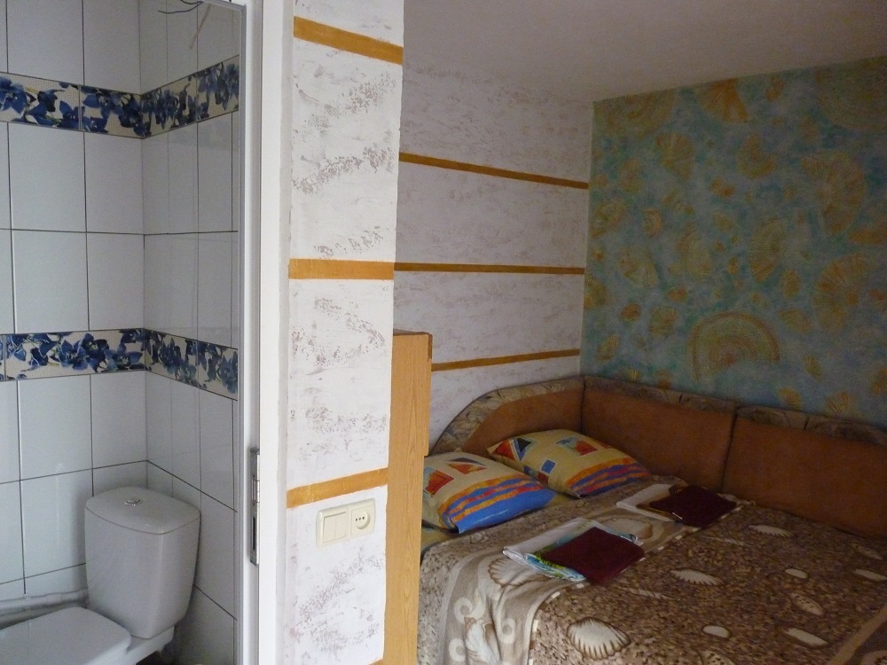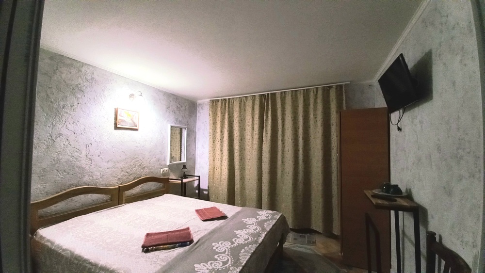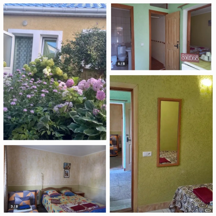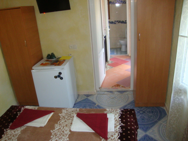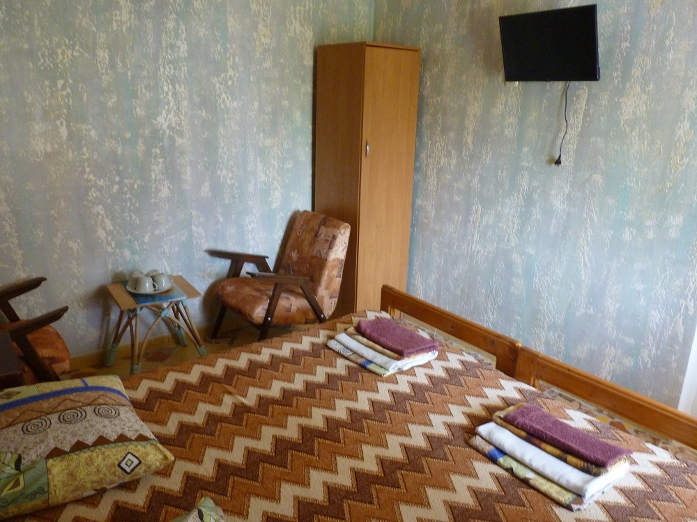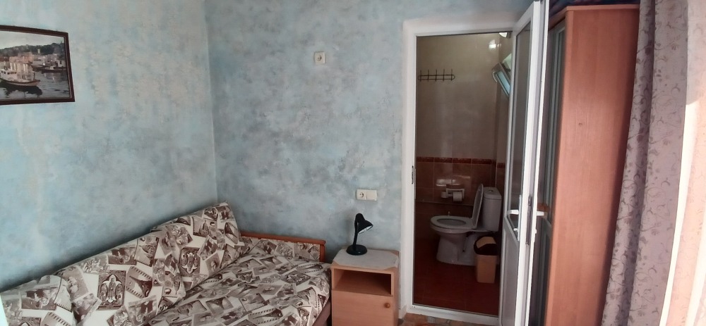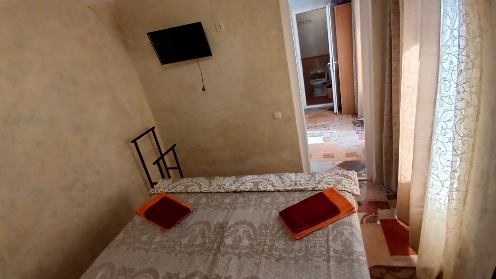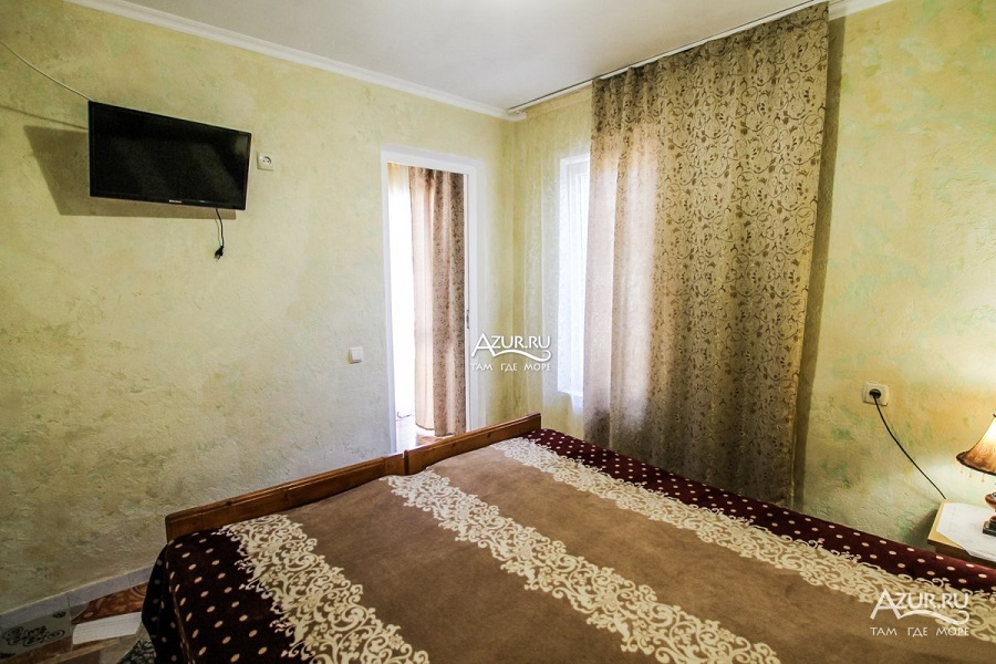Отдельный домик на два 3-х местных номера . Раздельный сан узел и душ . Горячая и холодная вода круглосуточно. В каждом номере телевизор плазма, холодильник, две кровати, диван .