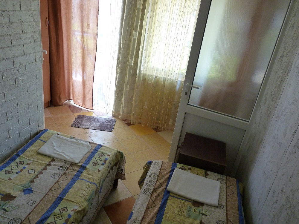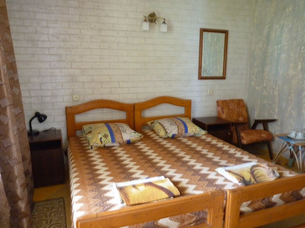 Двух местный номер с удобствами в номере . В номере две дубовые кровати которые легко раздвигаются на два отдельных места . В каждом номере телевизор плазма , охладитель воздуха Уфо . Во всех номерах стоят стеклопакеты с солнце отражающими стеклами , и в самые жаркие дни вы почувствуете прохладу в номере.