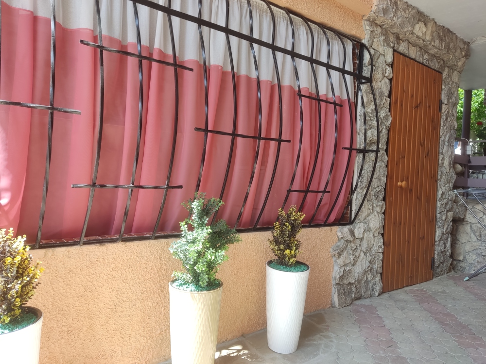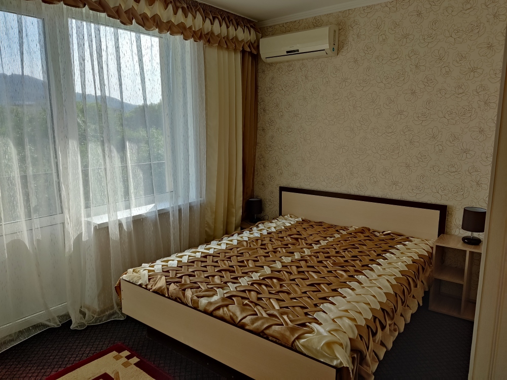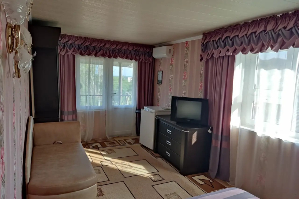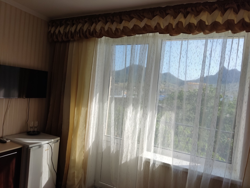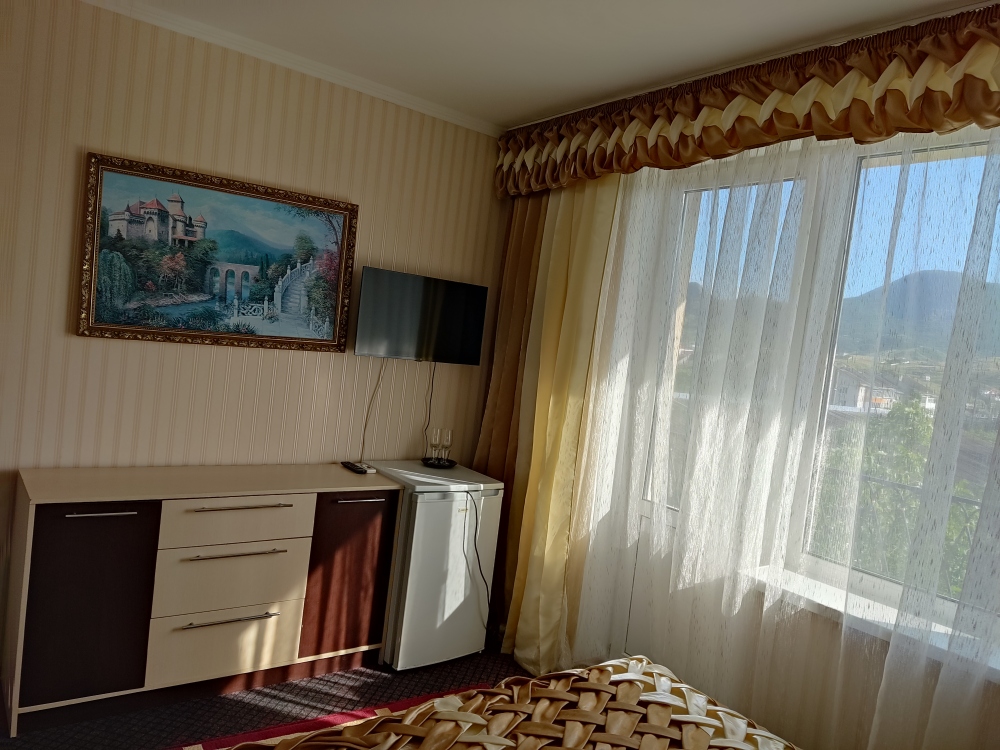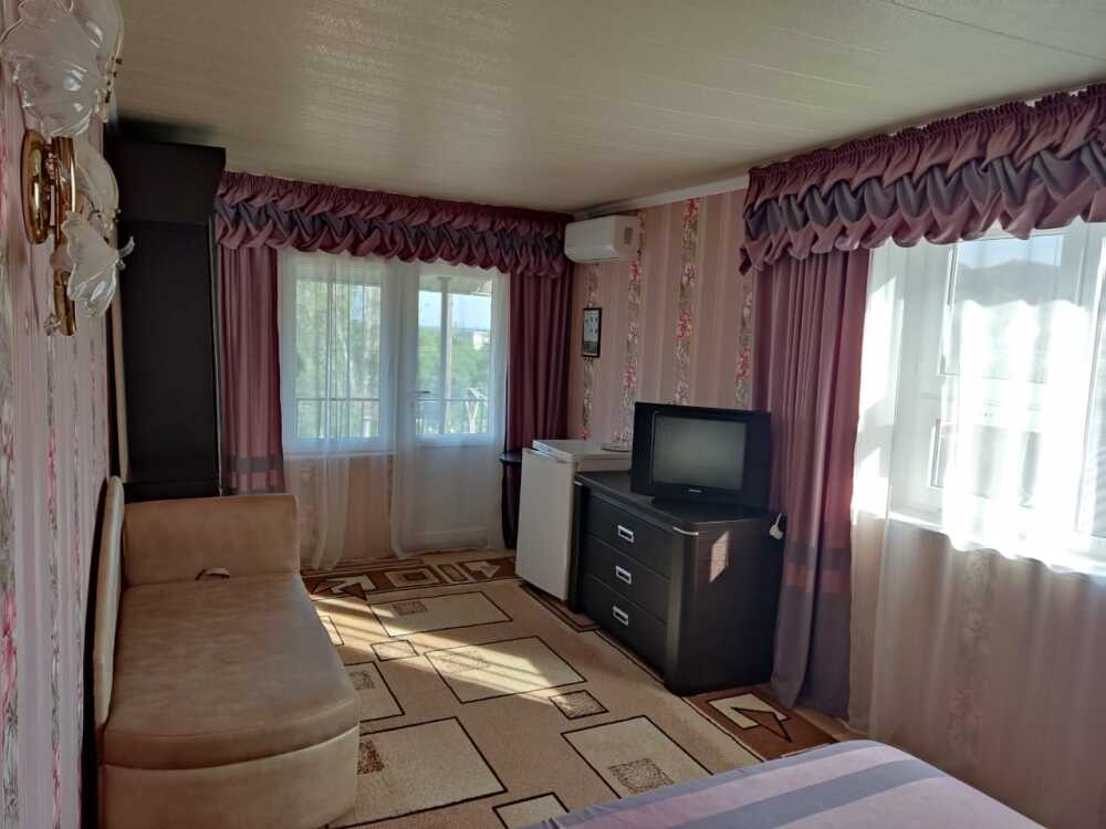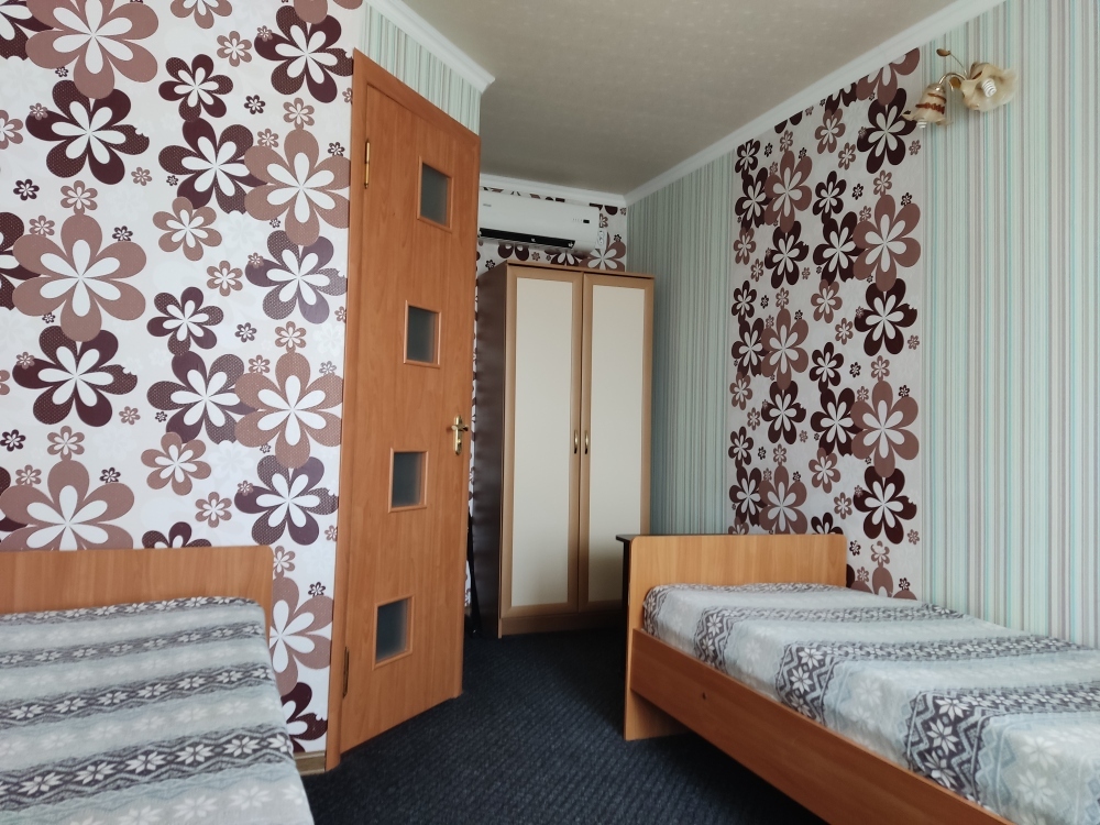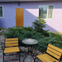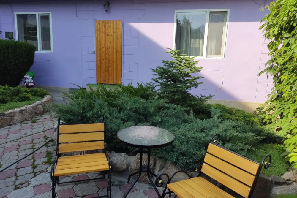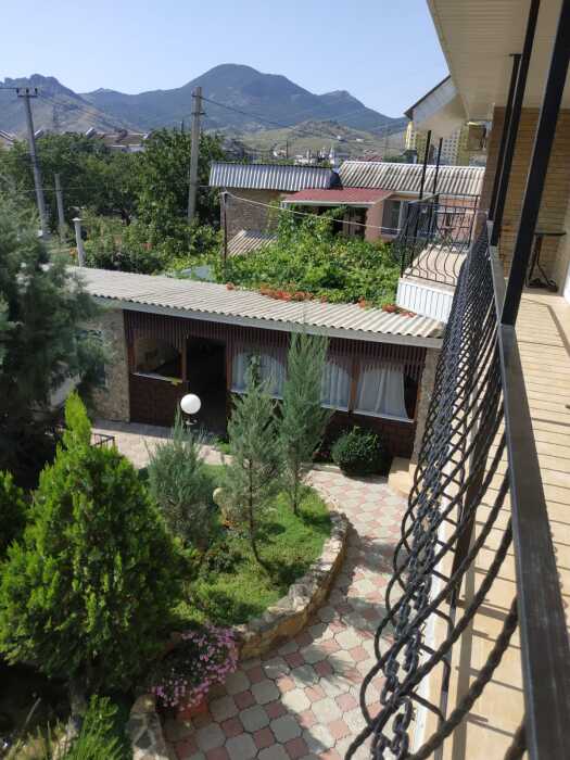 Есть комнаты семейного типа, отдельно стоящий дом и двухкомнатные номера. К некоторым комнатам предусмотрены балконы и терраса с видом на море и горный массив Кара-Даг.