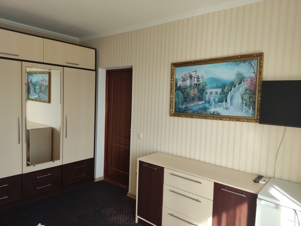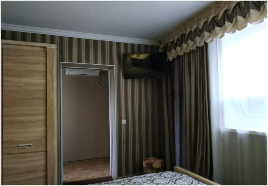 Отдельный вход. Хорошая звукоизоляция. В комнате: санузел (душ, унитаз, умывальник), холодильник, телевизор, кондиционер, 2-спальная кровать (ширина - 1,60 см), шкаф, журнальный стол.