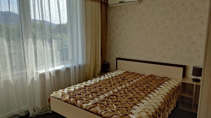 Номер состоит из двух комнат.Одна комната проходная. Хороший вариант для семьи с детьми.