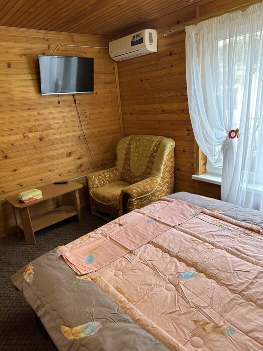 - Техника: Телевизор, кондиционер, холодильник, чайник, бесплатный Wi-Fi.