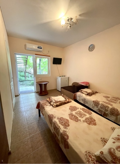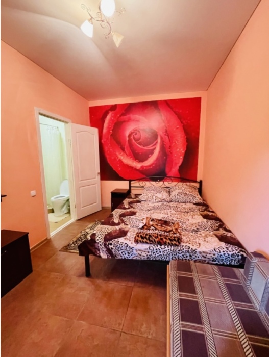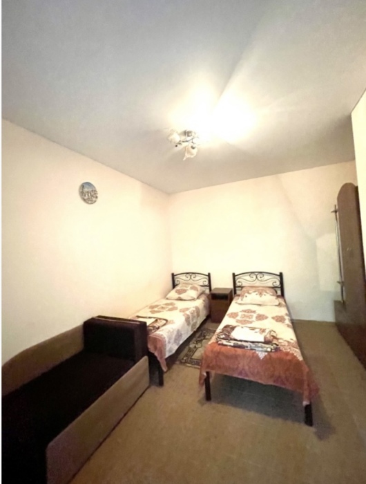 К услугам гостей уютная комната в частном доме, вместимостью 3 человека, уютный двор, летняя зеленая площадка – навес, предусмотрена зона отдыха, зона для барбекю, детская игровая площадка.