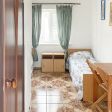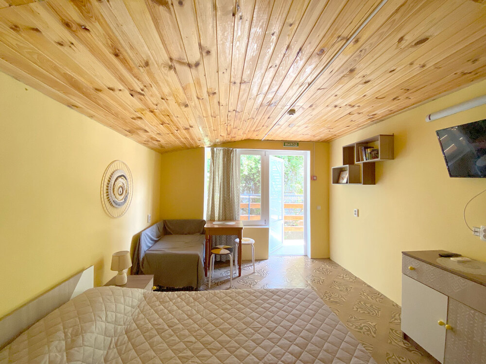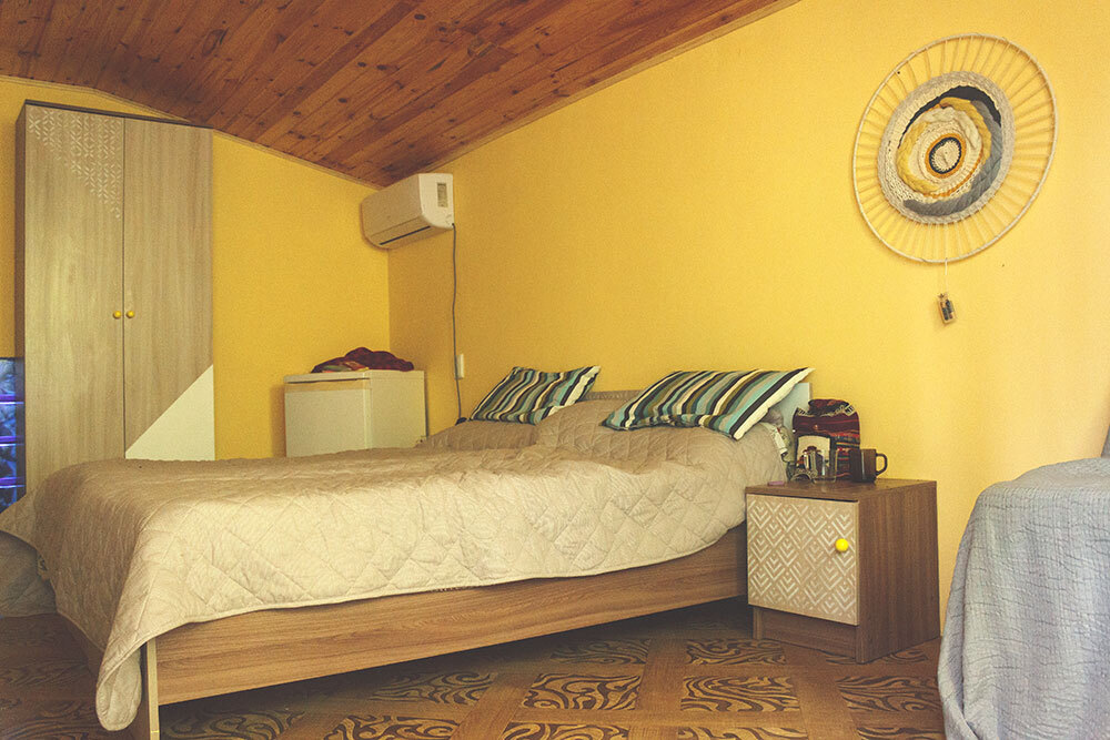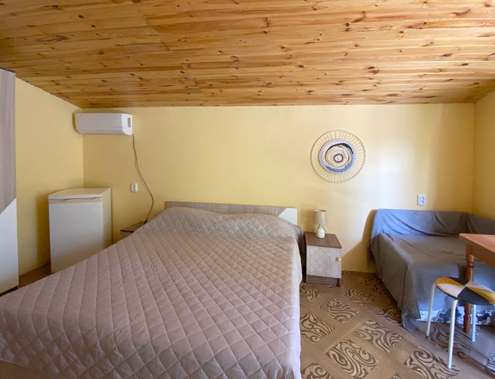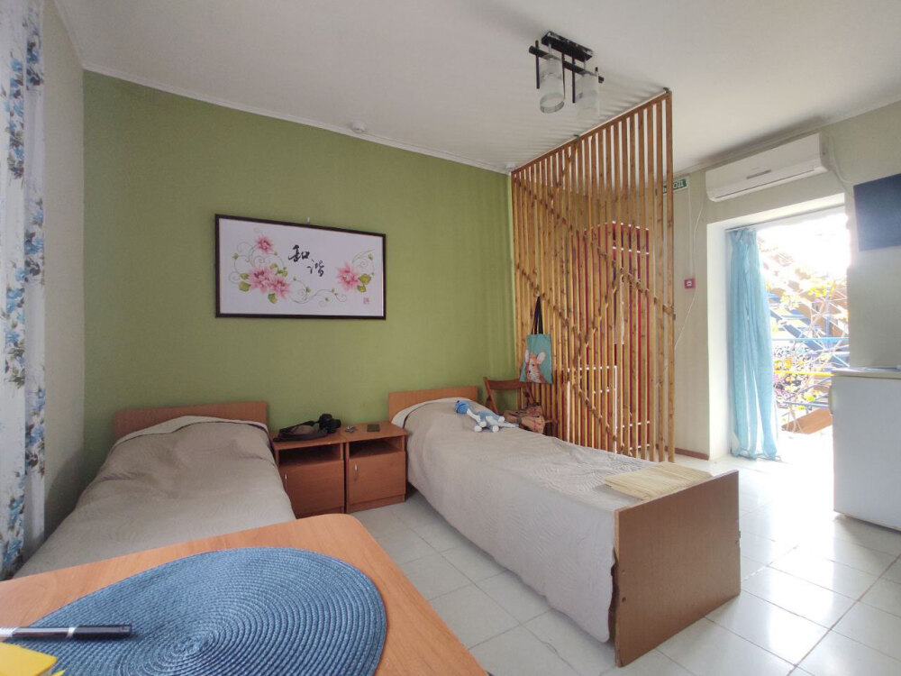 Двухкомнатный прохладный обособленный номер на 1 этаже рядом с кухней.