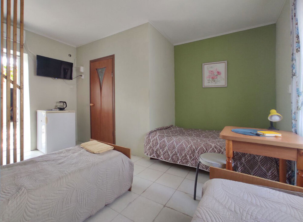 Гостям, для проживания, предлагаются номера разной вместимости со всем необходимым для комфортного отдыха.