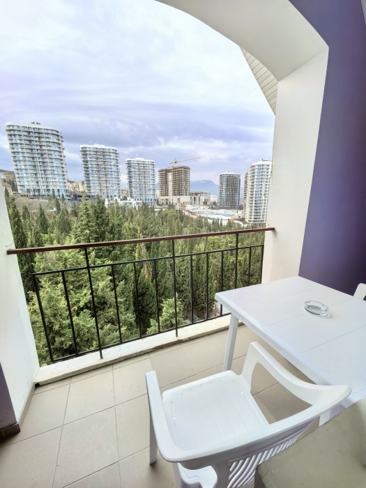 Просыпайтесь с видом на город и горы прямо с вашего личного балкона.