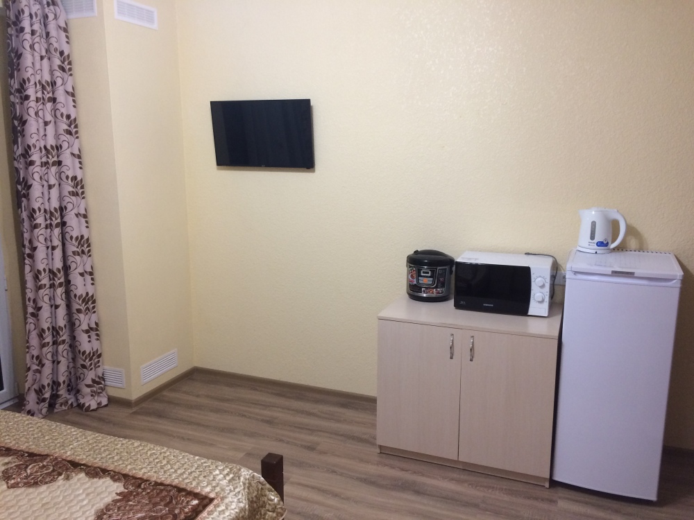 К услугам гостей предлагаем уютные комфортабельные номера семейного типа. Интерьеры гостевого дома выполнены в теплых светлых тонах, а оборудование отвечает всем современным требованиям. Все номера оснащены балконами, оснащены стеклопакетами и кондиционерами, имеют отдельную туалетную комнату с душевой кабиной и феном. В номерах к услугам наших гостей телевизор, спутниковое ТВ, а также мини-кухня со всем необходимым для приготовления и приема пищи. В каждом номере бесплатно - Wi-Fi. При желании в стоимость проживания можно включить питание.