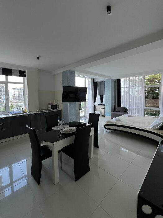 В шаговой доступности магазин, остановка общественного транспорта, аптека, море и пляж, детская площадка.