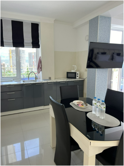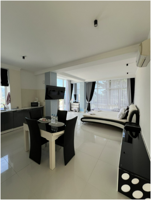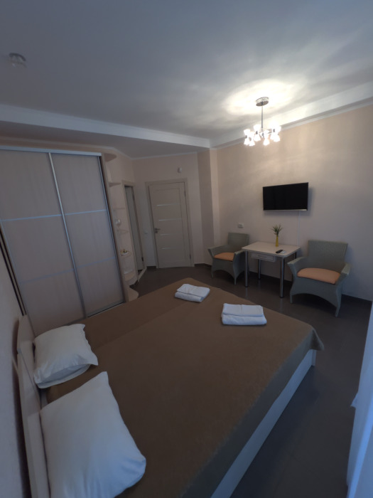 Все номера укомплектованы современной мебелью, телевизором, холодильником, кондиционером, есть также фен, полотенца, чайник, посуда, высокоскоростной WI-FI и всё, чтобы вы смогли насладиться временем, проведенным в стенах нашего дома. Ежедневная влажная уборка в номерах, возможность постирать и погладить одежду.
