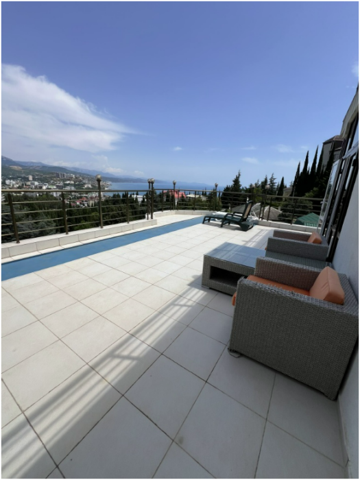 Номер с собственным двухъярусным балконом и изолированным пространством.