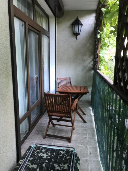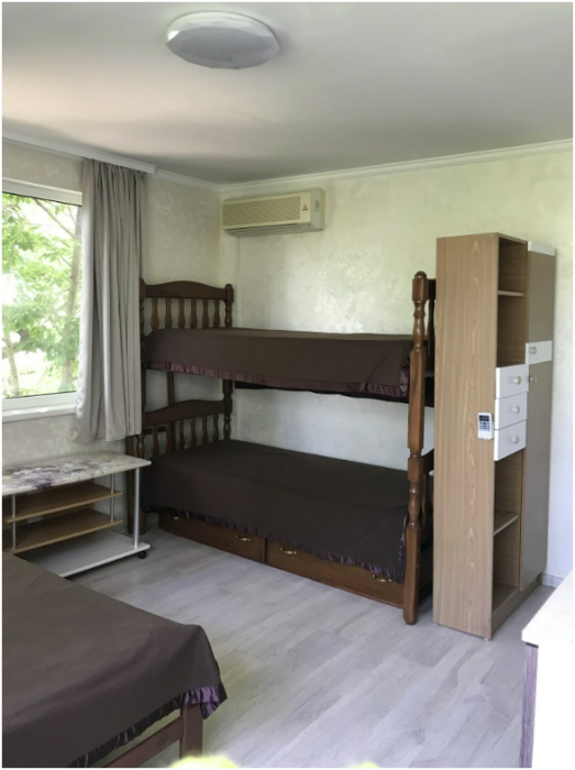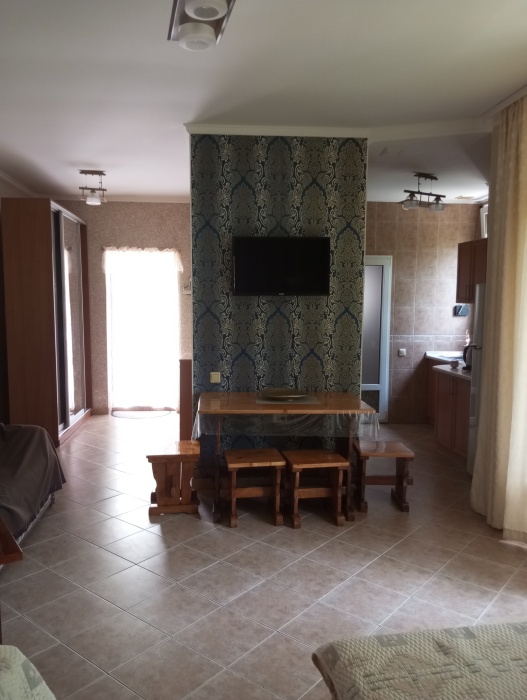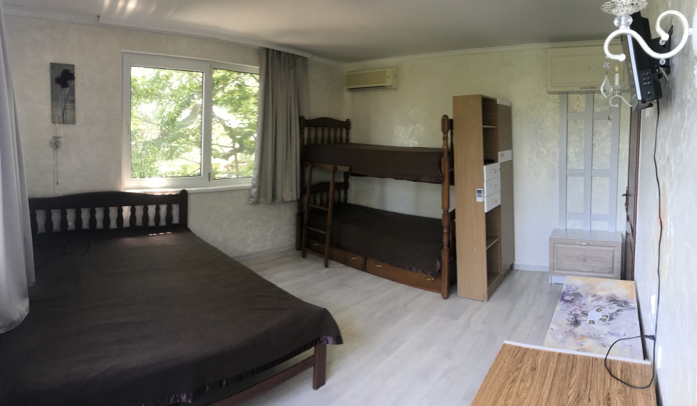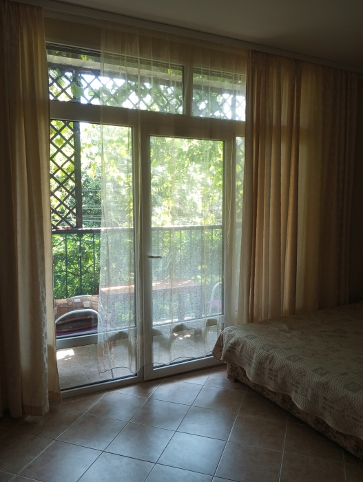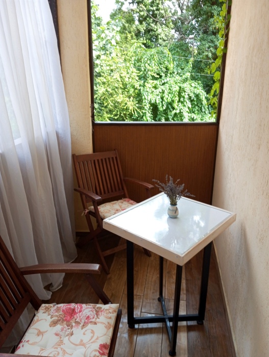 В номере деревянные полы. Идеален для проживания вдвоем, можно с ребенком (есть диван). Уютный балкон с боковым видом на море и зеленую зону.