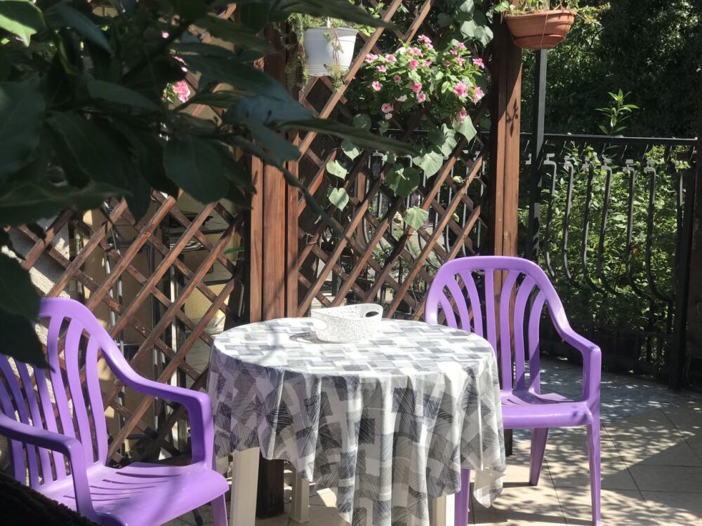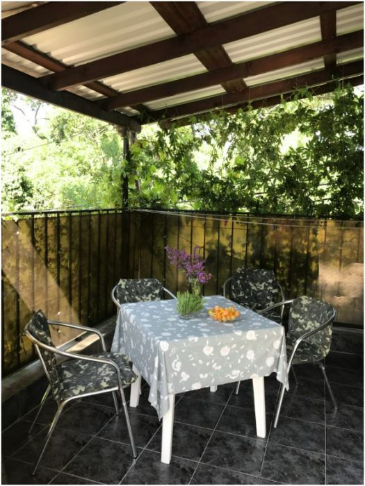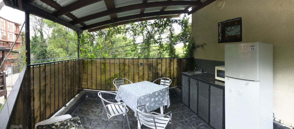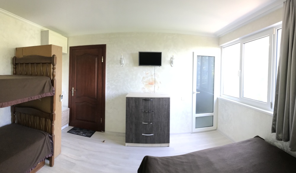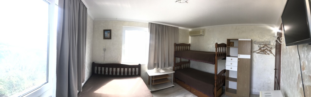Великолепный вид из номера. К номеру примыкает ЗАКРЫТАЯ площадка с кухней (только для Вашего номера), шезлонгом и столиком со стульями, с которой открывается вид как на гору Ай-Петри, так и на море. Есть все необходимое для приготовления пищи. Особенность номера-вход по лестнице.