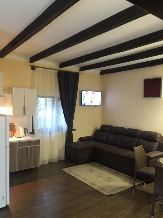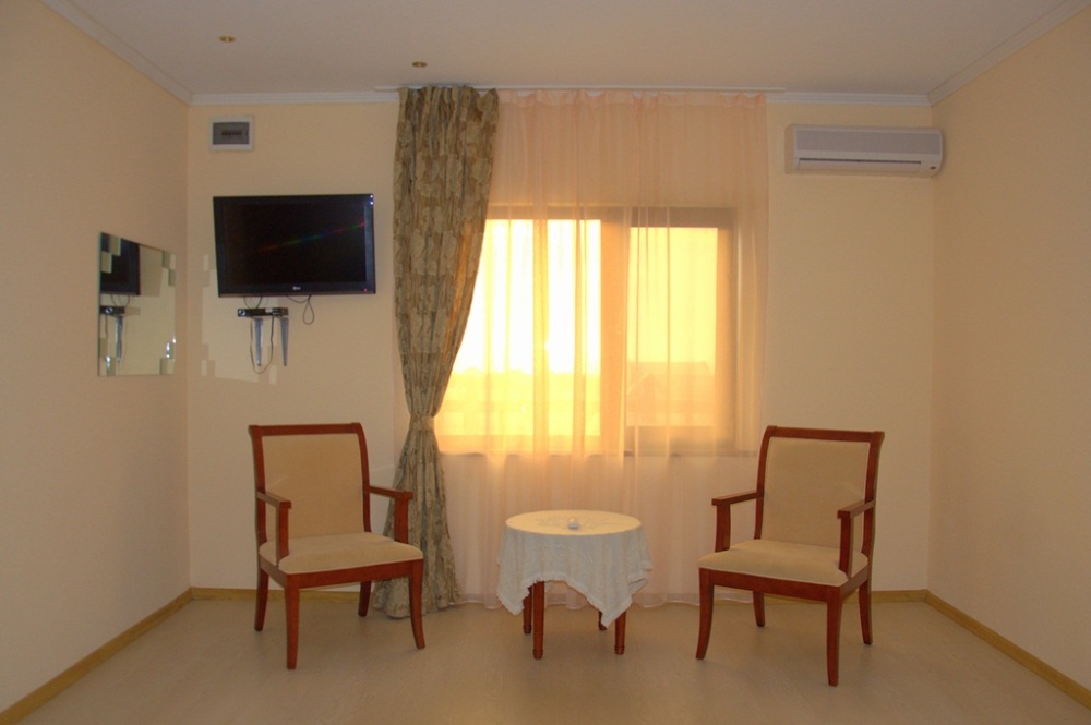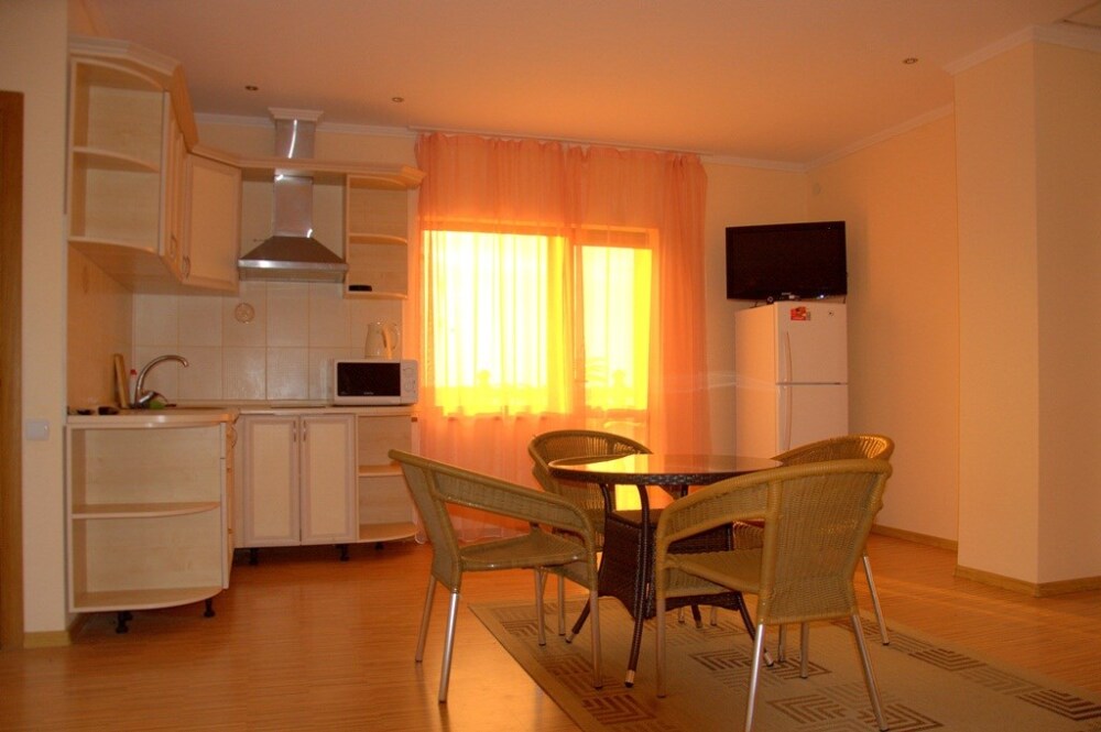 Апартаменты VIP - двухкомнатный номер с индивидуальной кухней. Находится на первом этаже двухэтажного корпуса, с индивидуальной зоной отдыха (беседка, мангал).