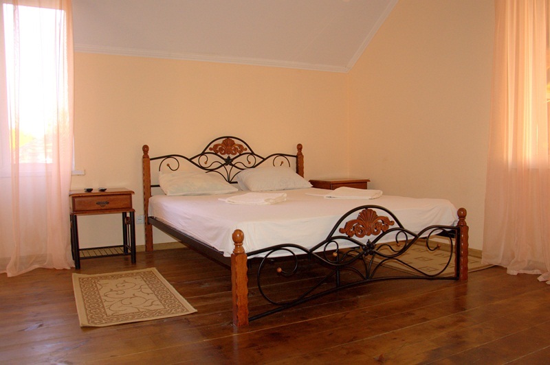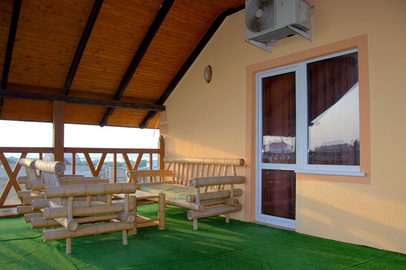 Номер с отдельным входом и индивидуальным балконом (бамбуковая мебель с видом на море и закат), находится на 2 этаже в отдельно стоящем здании. В номере двухспальная кровать, большой угловой раскладывающийся диван, холодильник, мини-кухня, СВЧ, электрочайник, LCD TV, спутниковое ТВ, кондиционер, санузел (душевая кабина, умывальник, туалет).